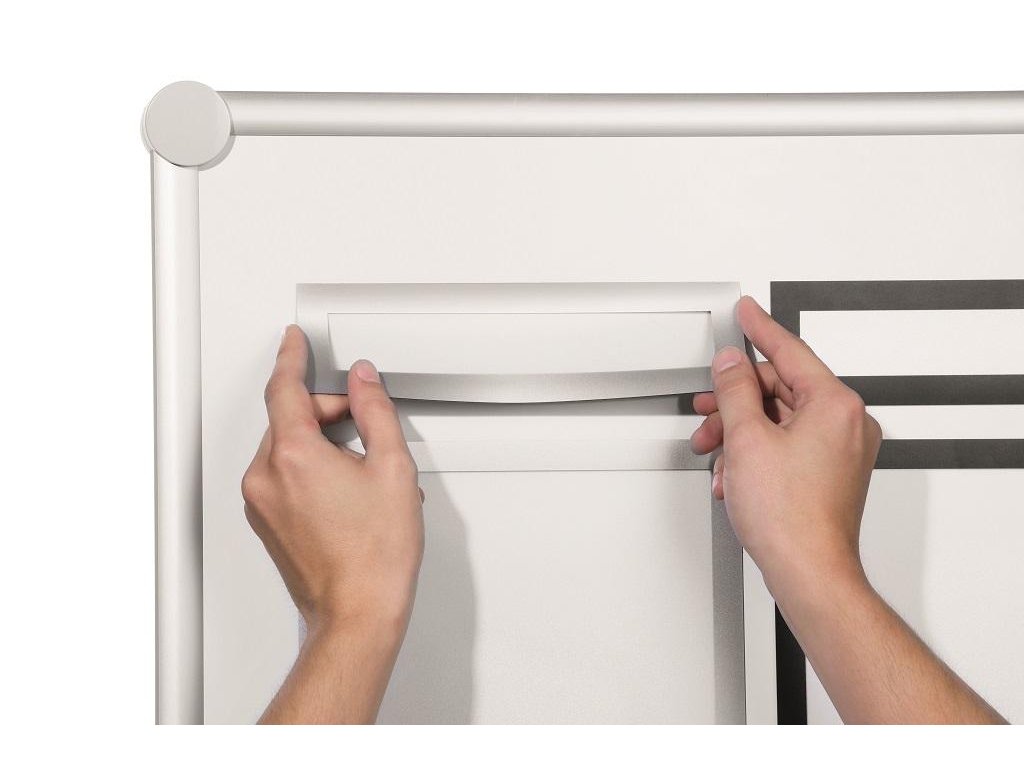 Informačný panel na titulky štruktúr informačných materiálov s magnetickou časťou na zadnej strane rámika na jednoduché a rýchle vkladanie informácie. Vonkajšie rozmery 236 × 66 mm, list na potlačenie 210 × 40 mm. Vhodný na hladké magnetické povrchy, napr. magnetickú tabuľu. Farba strieborná. Balenie 5 ks.