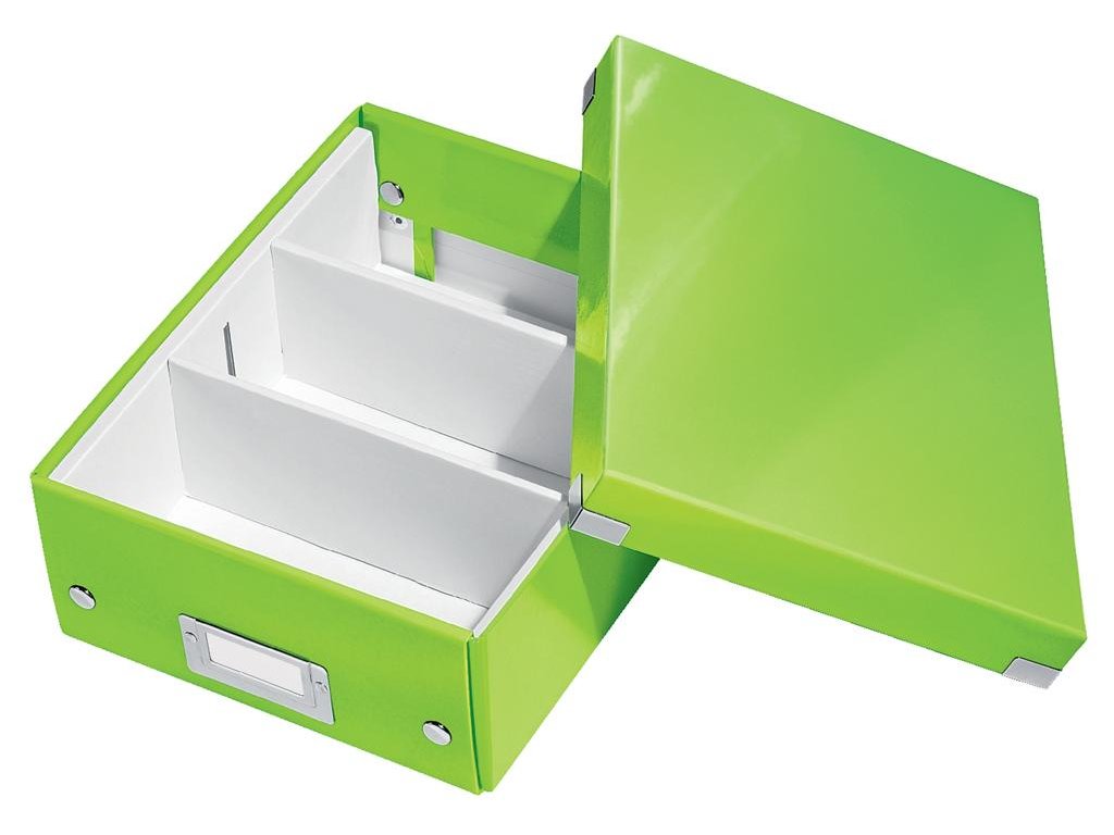Malá štýlová skladacia krabica s vekom a s rámčekom na štítok. Na usporiadanie nabíjačiek, káblov a ďalšieho vybavenia kancelárie. Veľkosť S. Na prvý pohľad vidíte, čo sa vojde dovnútra! Výška krabice bola navrhnutá tak, aby vám poskytla dostatok priestoru na uloženie príslušenstva a zároveň zabránila skladaniu vecí na seba. Na vylepšenie usporiadania obsahu krabice použite priložený vnútorný systém priehradiek. Môžete rozdeliť krabicu na 2 alebo 3 časti a zabrániť tak miešaniu káblov alebo fotiek. Inteligentná skladacia konštrukcia: rýchle a jednoduché zloženie bez nutnosti použitia skrutiek a možnosť opätovného rozloženia na úsporu miesta, keď krabicu práve nepotrebujete. Moderný vzhľad a farby na skrášlenie vašej kancelárie alebo domova. Lesklé vyhotovenie vytvára prvotriedny vzhľad krabice a umožňuje dlhodobé používanie a jednoduché utieranie prachu. Rámček na štítok pre jednoduché označenie obsahu. Materiál pevný kartón potiahnutý polaminovaným papierom. Farba zelená.