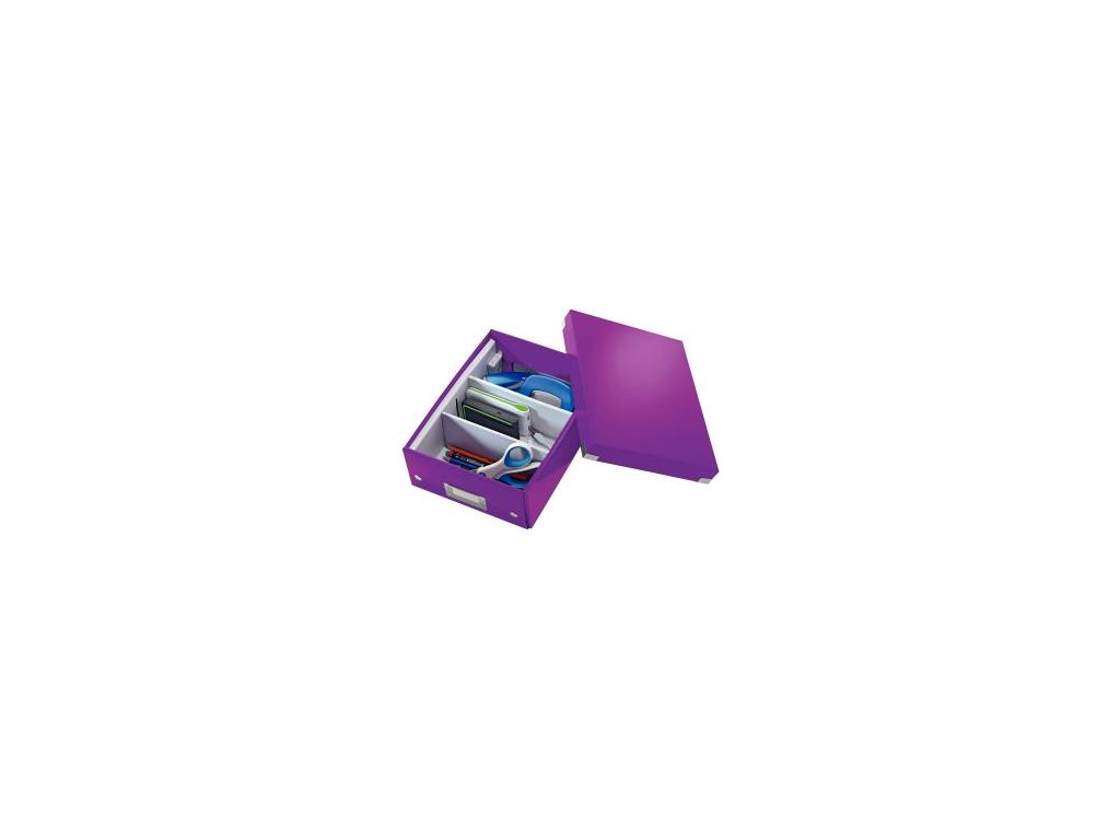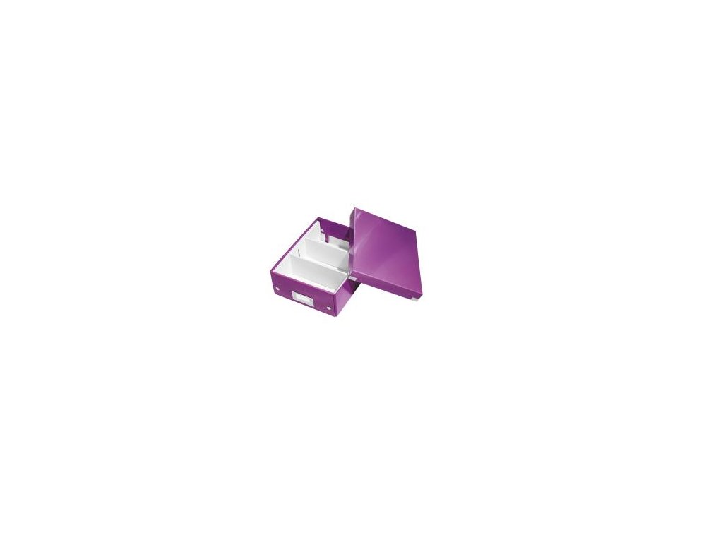 Malá štýlová skladacia krabica s vekom a s rámčekom na štítok. Na usporiadanie nabíjačiek, káblov a ďalšieho vybavenia kancelárie. Veľkosť S. Na prvý pohľad vidíte, čo sa vojde dovnútra! Výška krabice bola navrhnutá tak, aby vám poskytla dostatok priestoru na uloženie príslušenstva a zároveň zabránila skladaniu vecí na seba. Na vylepšenie usporiadania obsahu krabice použite priložený vnútorný systém priehradiek. Môžete rozdeliť krabicu na 2 alebo 3 časti a zabrániť tak miešaniu káblov alebo fotiek. Inteligentná skladacia konštrukcia: rýchle a jednoduché zloženie bez nutnosti použitia skrutiek a možnosť opätovného rozloženia na úsporu miesta, keď krabicu práve nepotrebujete. Moderný vzhľad a farby na skrášlenie vašej kancelárie alebo domova. Lesklé vyhotovenie vytvára prvotriedny vzhľad krabice a umožňuje dlhodobé používanie a jednoduché utieranie prachu. Rámček na štítok pre jednoduché označenie obsahu. Materiál pevný kartón potiahnutý polaminovaným papierom. Farba purpurová.