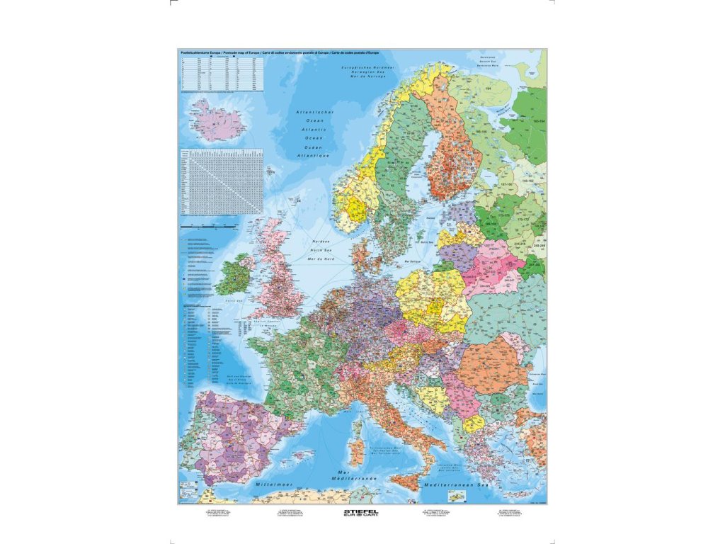 Nástenná mapa Európa s PSČ je podrobne spracovaná. Na mape nájdete všetky obce a mestá s podrobným vyznačením prideleného PSČ. Umožňuje presnú identifikáciu PSČ. Mapa je určená pre špedičné firmy. Je vhodná na trvalé vyvesenie. Je laminovaná a lištovaná. Mierka 1:3,6 mil., rozmery 100 x 140 cm.