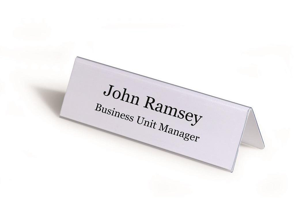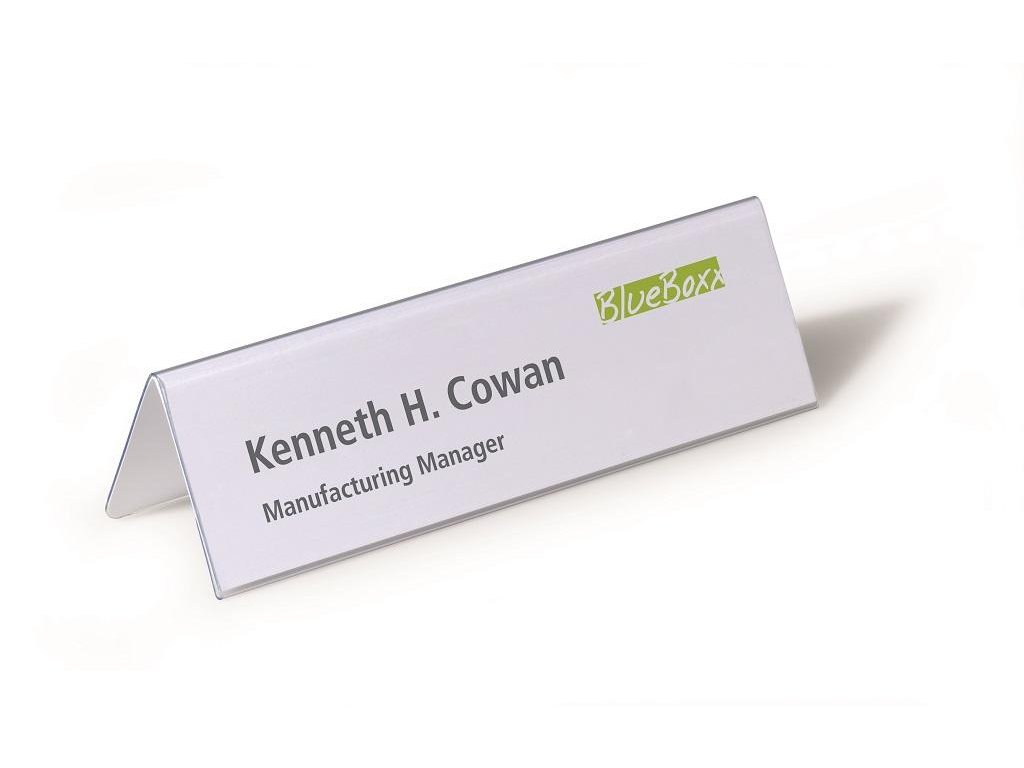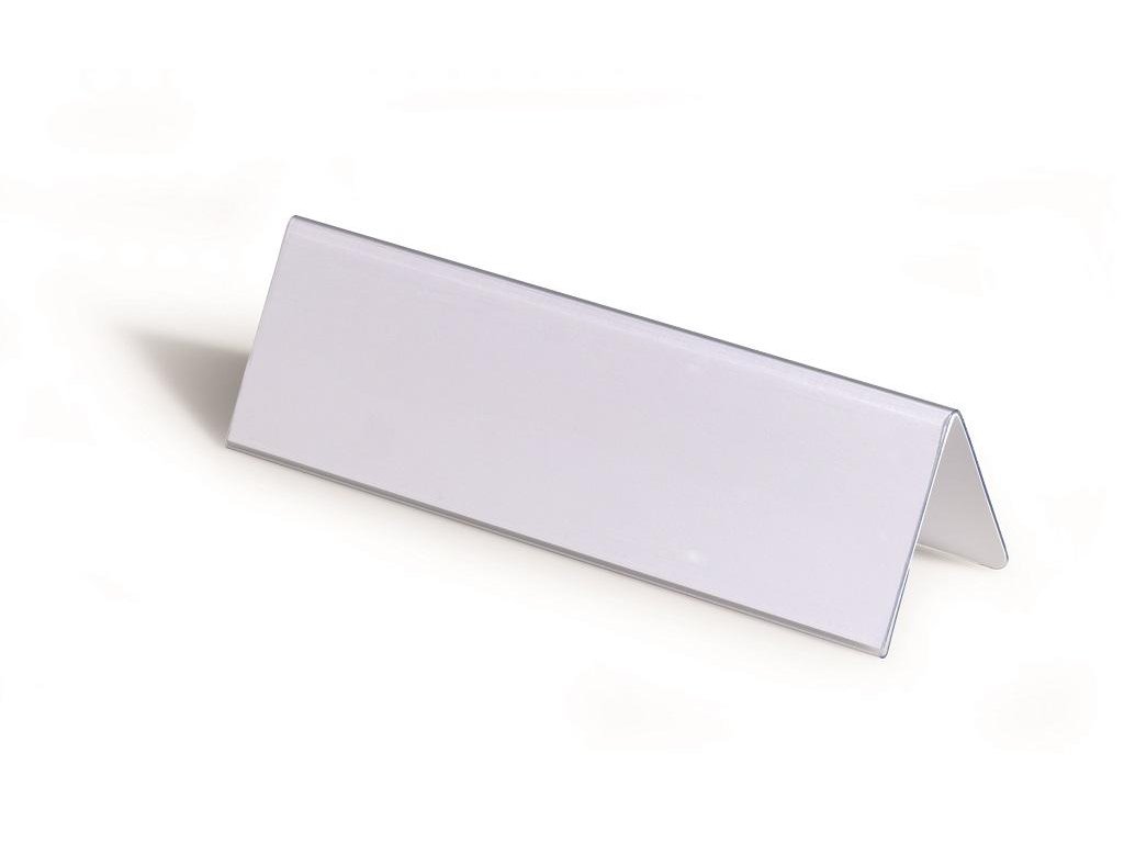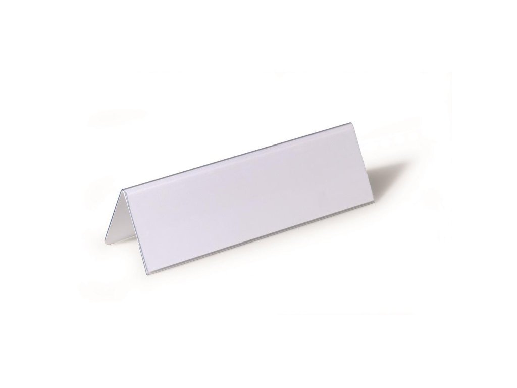 Obojstranne čitateľná stolová menovka z pevného PVC, vhodná na konferencie, recepčné pulty, ceny tovarov a popis produktov. Dodávaná s vymeniteľnou prázdnou kartou. Väčšie balenie 25 ks.