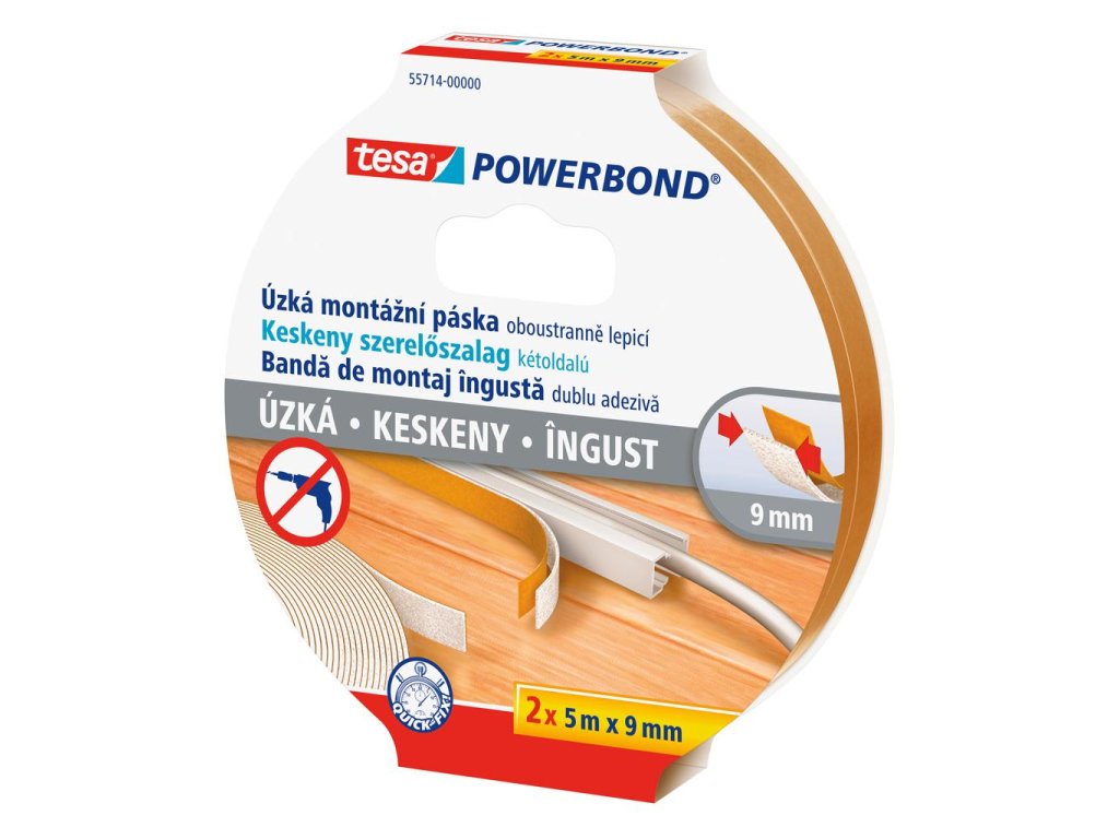 Obojstranne lepiaca montážna páska vhodná na úzke predmety, ako kabelážne lišty, LED pásky a pod. Už žiadne rezanie na tenké prúžky. Šírka pásky 9 mm, návin 2 × 5 m. Balenie 2 ks.