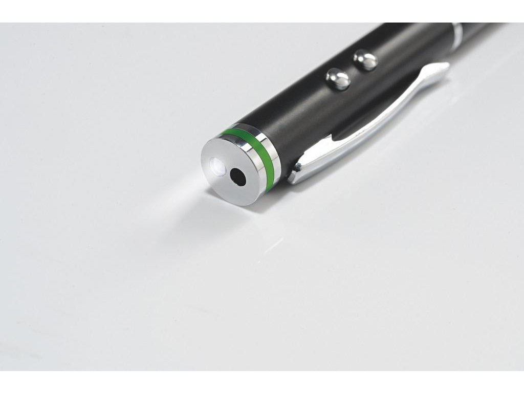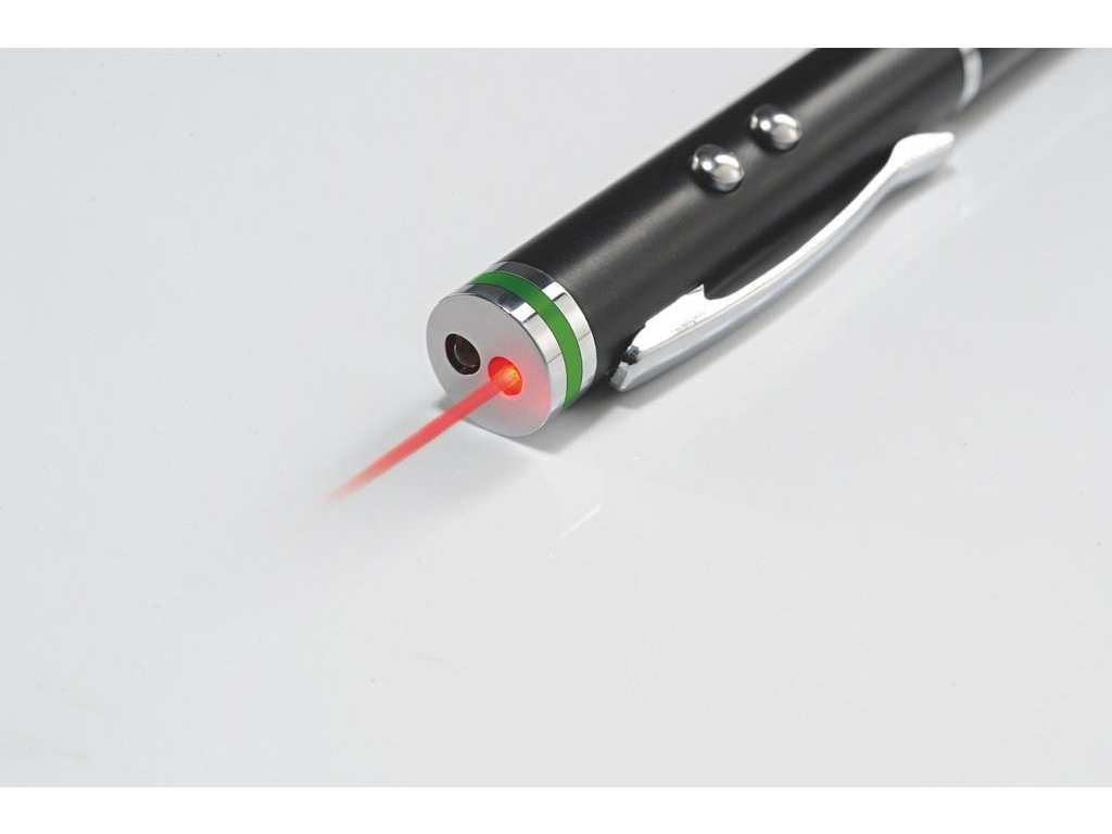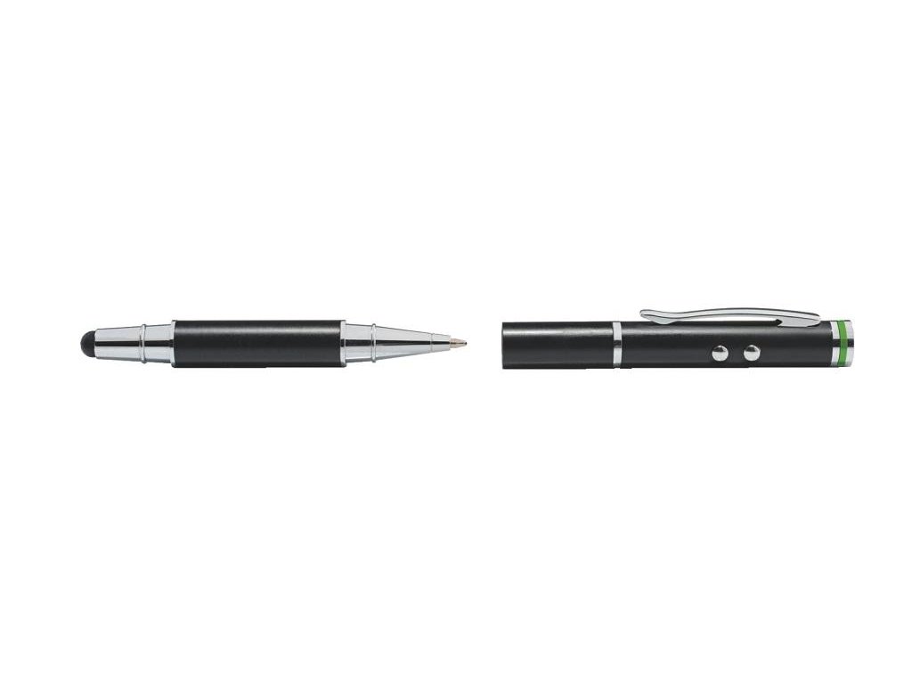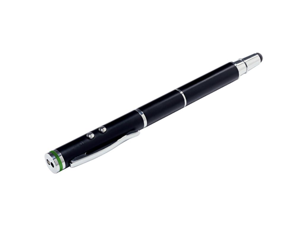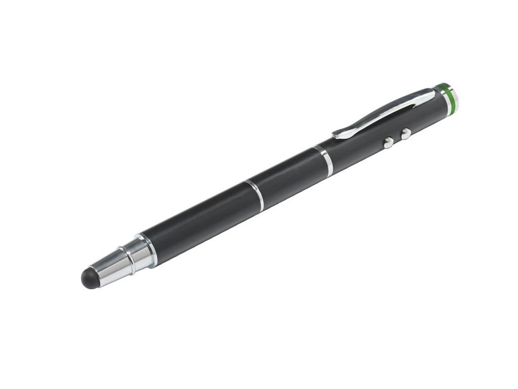 Stylus pre dotykové obrazovky so 4 funkciami slúži aj ako guľôčkové pero, laserové ukazovadlo a vreckové LED svietidlo. Mäkký silikónový hrot chrániaci pred poškriabaním, vysokokvalitné pero s vymieňateľnou náplňou. Súčasťou balenia sú 3 batérie typu LR41. Farba čierna.