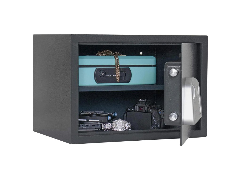 Nábytkový sejf z modelovej rady Jupiter má elektronický zámok s napájaním 4 x 1,5V batériami (nie sú súčasťou balenia). Vo vnútri sejfu nájdu svoje miesto malé cennosti, doklady, hodinky alebo menšie šperky. Sejf je možné ukotviť prostredníctvom pripravených otvorov na spodnej aj zadnej strane. Materiál na ukotvenie je súčasťou balenia.