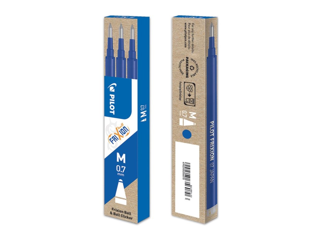 Náplň s prepisovateľným atramentom do rollerov Pilot FriXion Clickera FriXion Ball. V balení 3 ks. Gulička 0,7 mm.