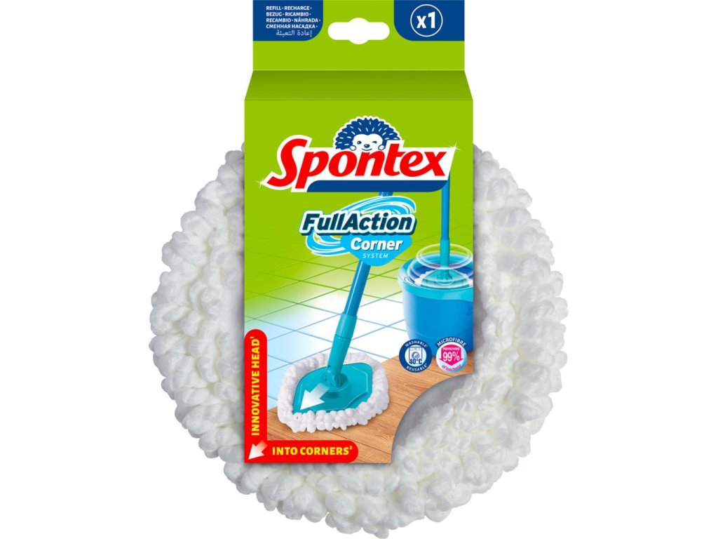 Full Action Corner System strapcová náhrada zo 100% mikrovlákna v tvare citrónu, ktorý umožňuje ľahké upratovanie rohov. Náhrada sa ľahko upevňuje pomocou suchého zipsu. Je účinná iba s vodou, odstráni 99% baktérií aj bez použitia detergentov. Vhodná pre všetky typy podláh.