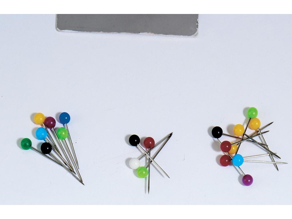 Guľaté špendlíky určené na vyznačenie bodov na mapách, plánoch, organizačných a vývesných tabuliach. Priemer hlavičky 4 mm. Balenie v mixe farieb. V balení 60 kusov.
