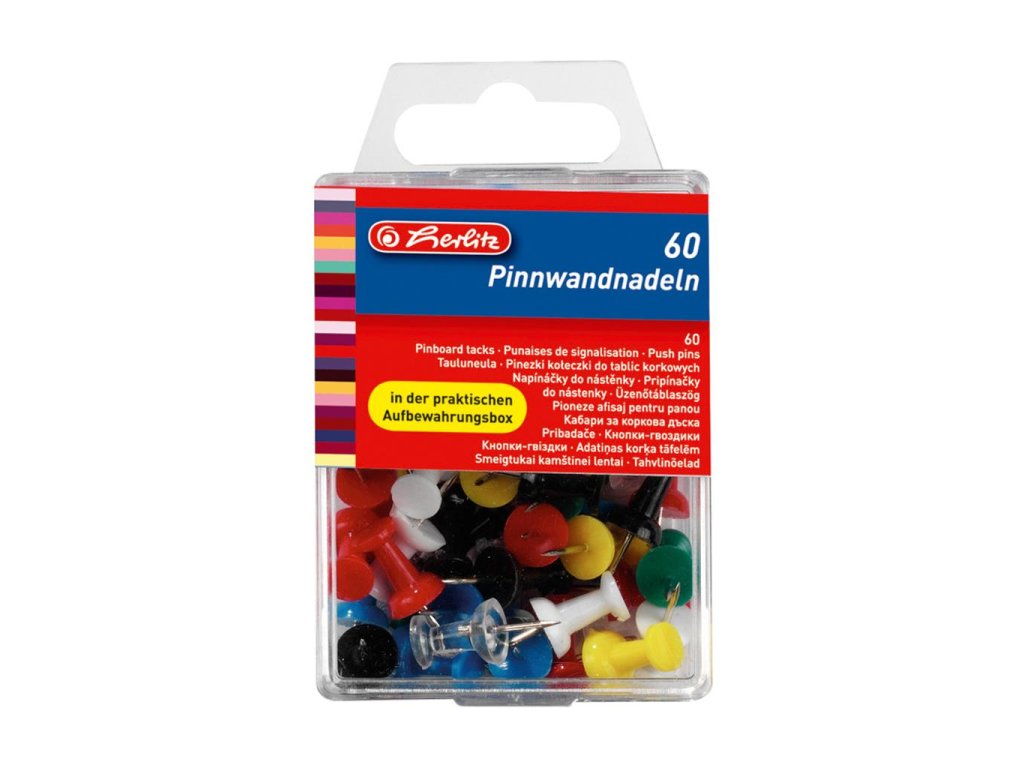 Napichovacie špendlíky s farebnou plastovou hlavičkou. Balenie 60 ks v plastovej krabičke. Mix farieb.