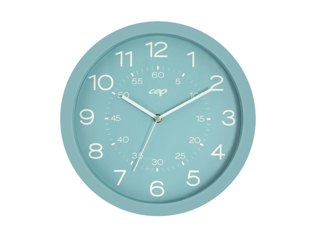 Nový dizajn: tenšie ručičky, matný povrch. Dvojité odstupňovanie: hodiny a minúty. Ochranné sklo z plexiskla (PMMA). Vhodné pre profesionálne, školské alebo teleworkové prostredie. Analógové hodiny. Tichý quartz strojček. Farba mentolová.