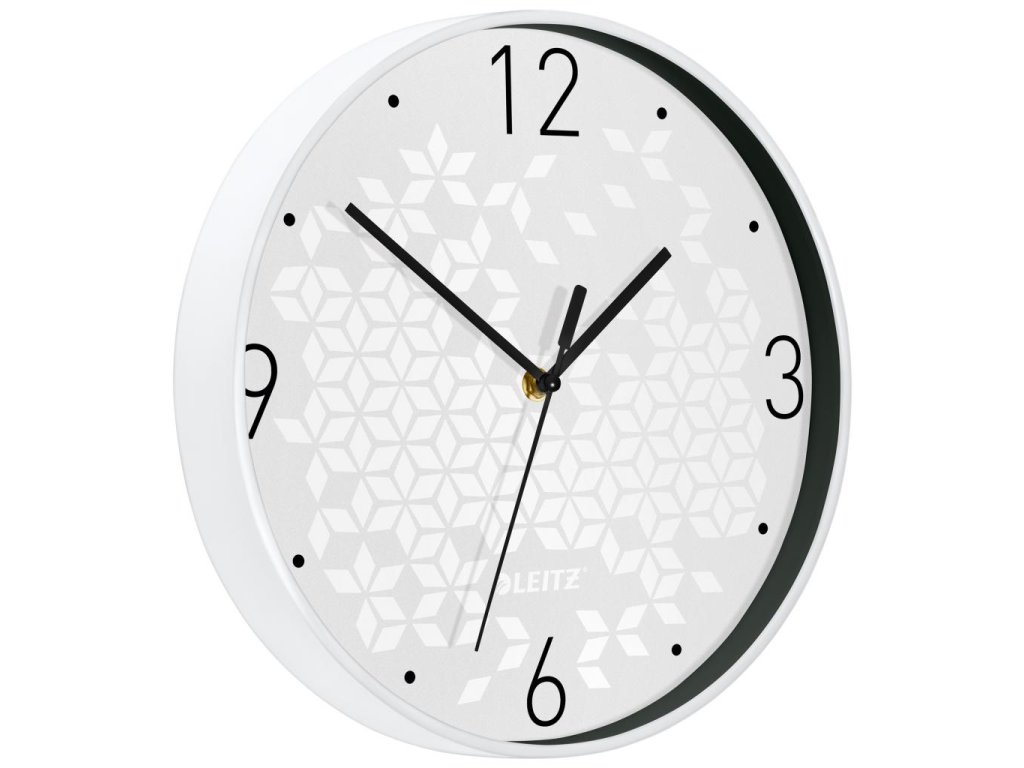 Quartz hodiny z produktového radu Leitz WOW. Tichý chod, dvojfarebný rám z pevného plastu v kombinácii so sklenenou prednou stranou. Jasný ciferník vo WOW farbách s veľkými číslicami, tri kontrastné ručičky viditeľné aj z diaľky. Priemer 29 cm, hrúbka 4,3 cm. Batéria AA nie je súčasťou balenia. Farba biela.