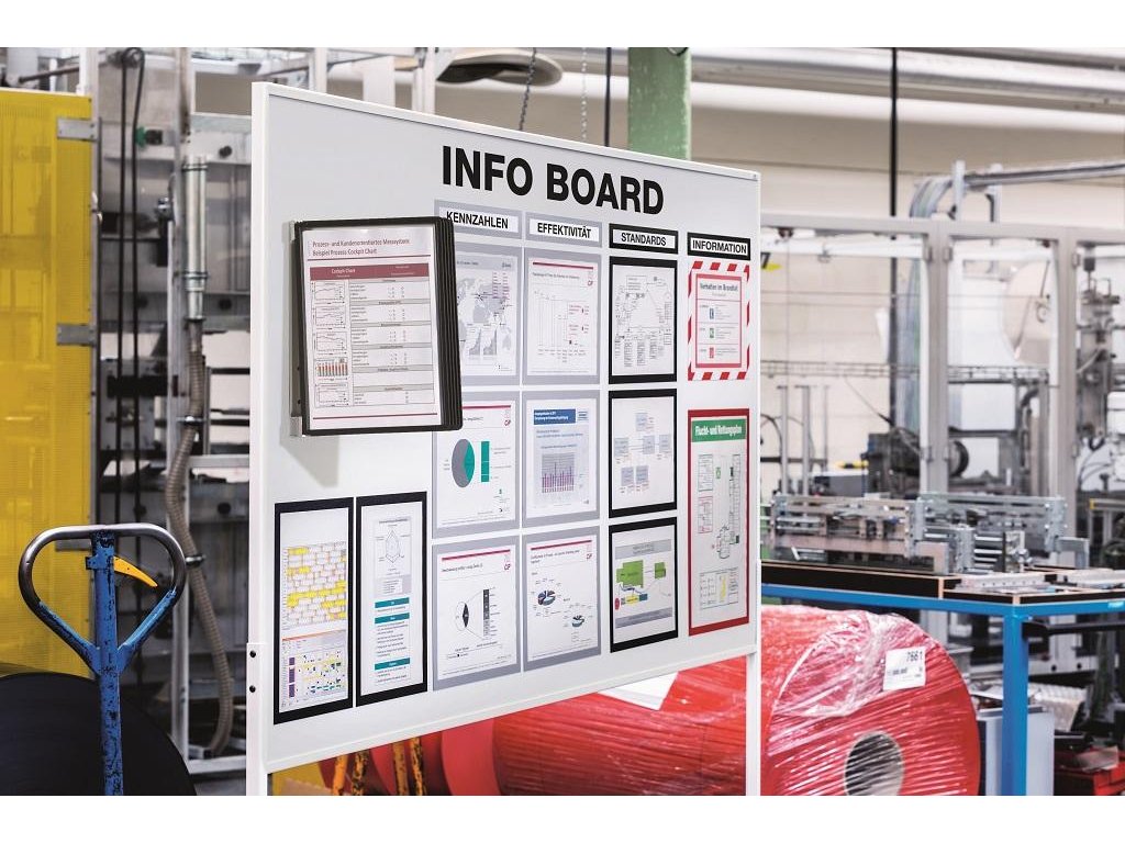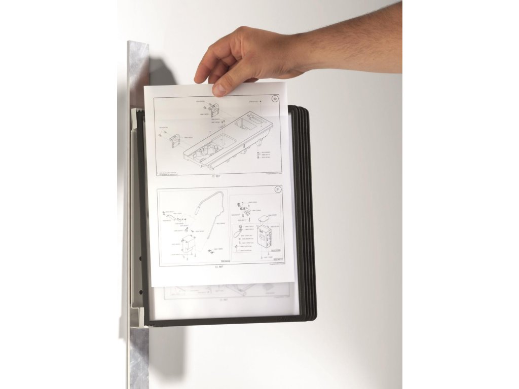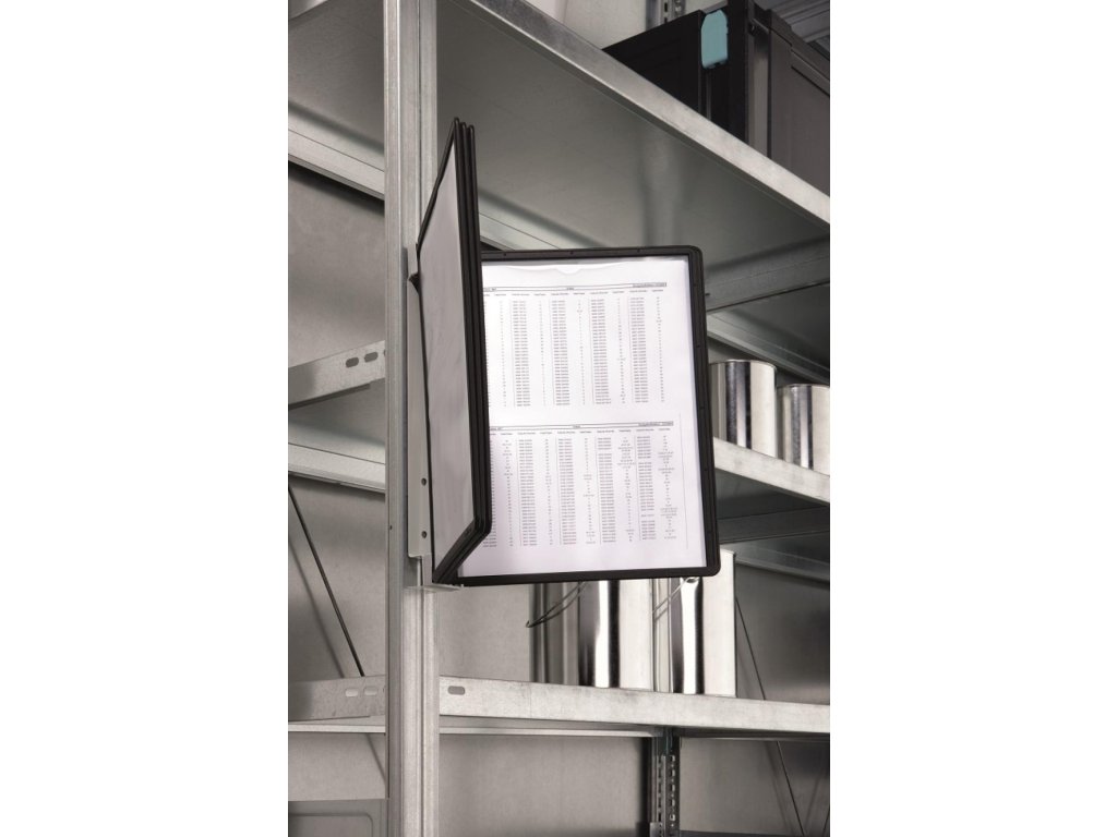 Extrémne pevný magnetický držiak na stenu, vyrobený z kovovej platne. Dodávaný s 5 displejovými polypropylénovými panelmi SHERPA®. Ideálny na použitie v priemysle, vrátane dielní a v skladoch. Jednoduché vkladanie a vyberanie panelov. Farba panelov čierna.