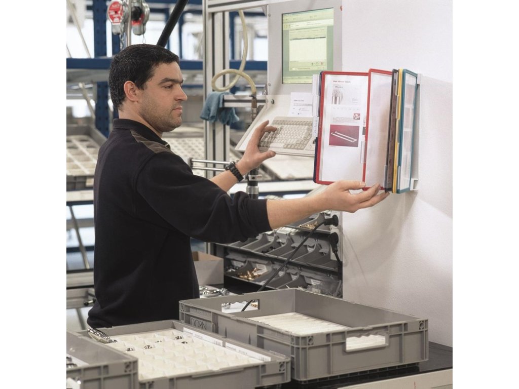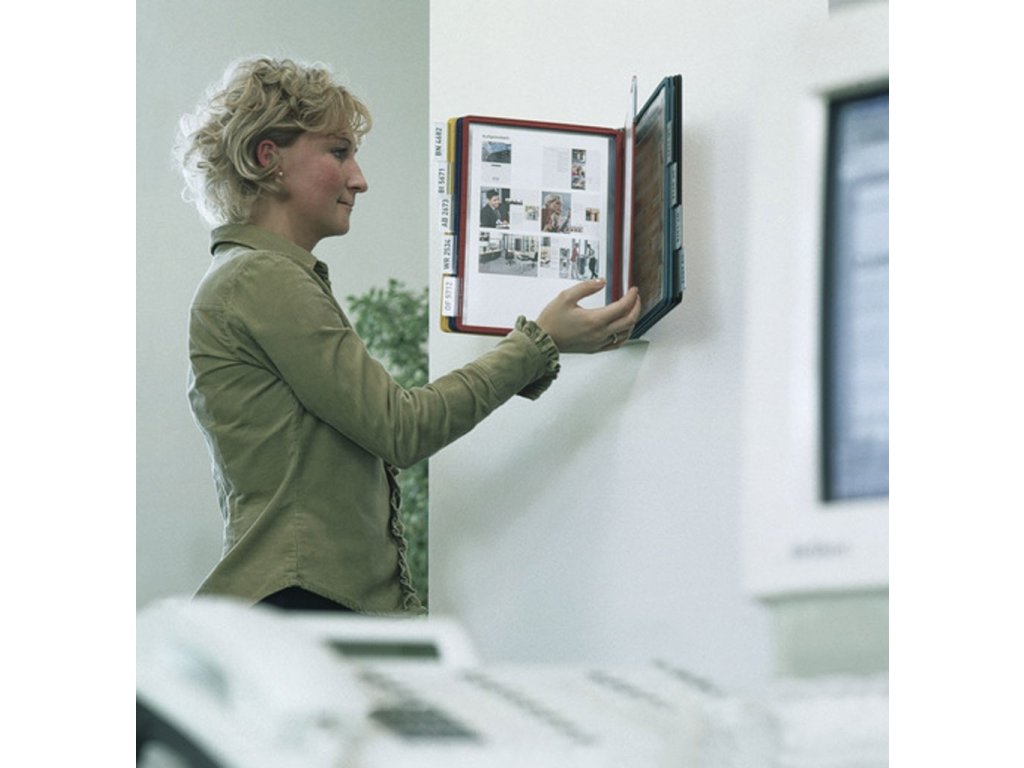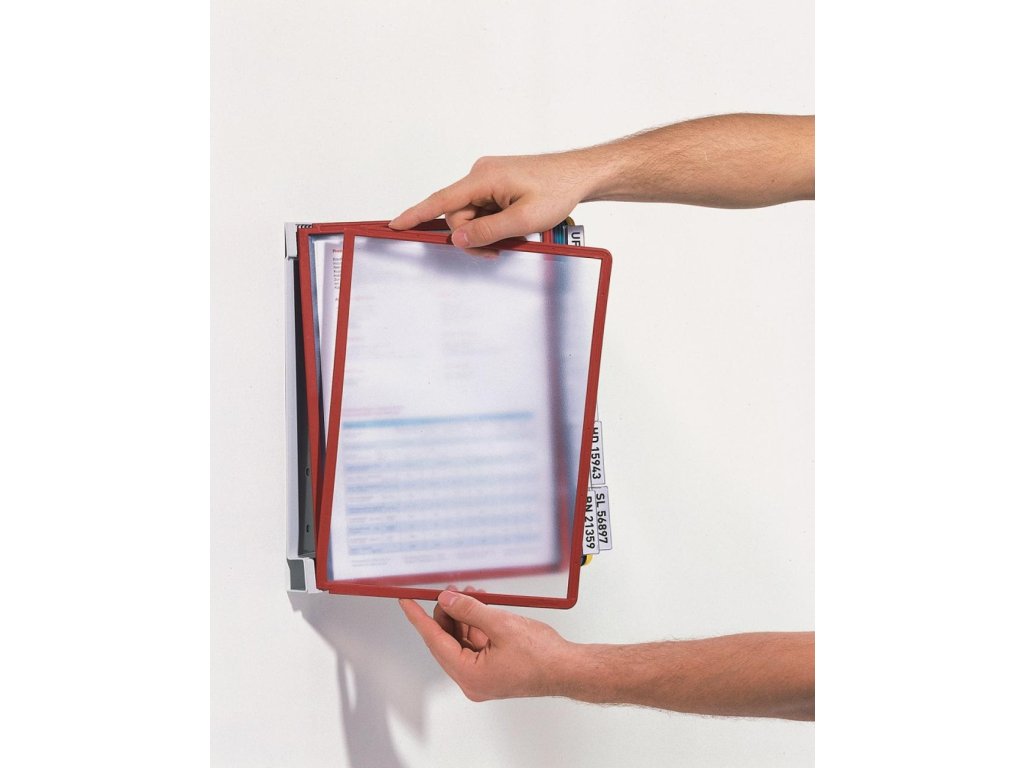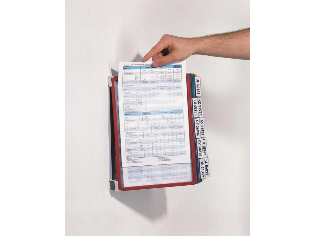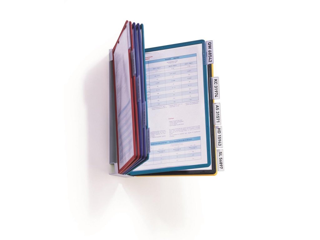 Extrémne pevný držiak na stenu vyrobený z kovovej platne s 10 displejovými polypropylénovými panelmi Sherpa s indexami. Ideálny pre použitie v priemysle, včítane dielní, skladoch, a kuchyniach. Držiak sa ľahko montuje, panely sa do držiaka jednoducho vkladajú a vyberajú. Farby panelov: po 2 ks z čiernej, červenej, žltej, zelenej a tmavomodrej pri 10 paneloch.
