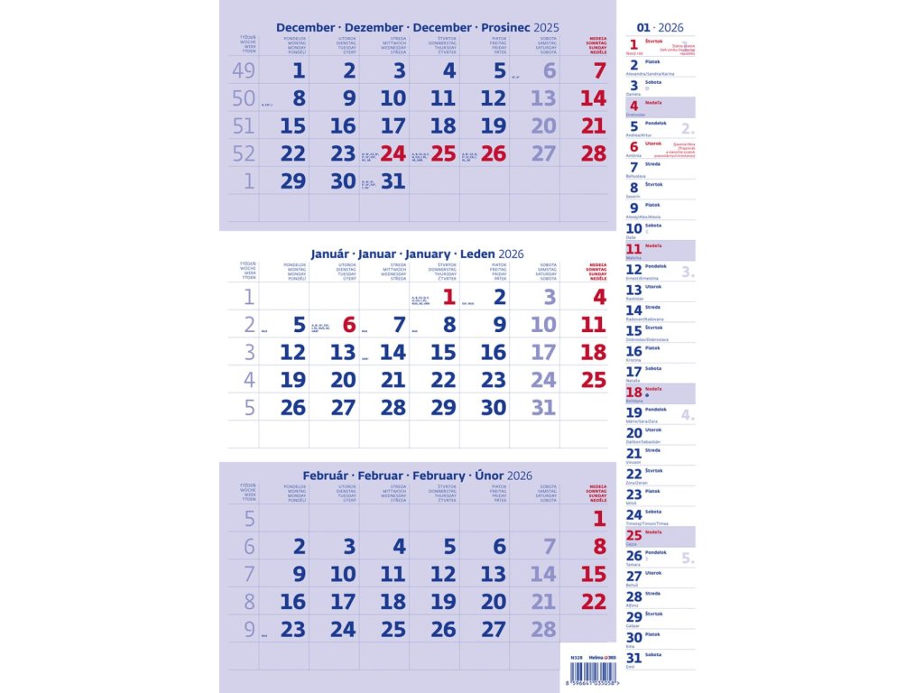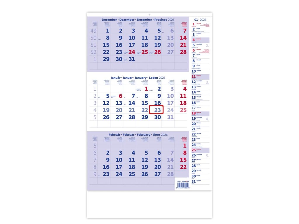 Nástenný kalendár 3-mesačný modrý s poznámkami 31,5 x 45 cm 2026