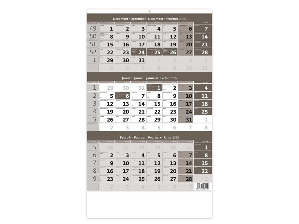 Nástenný kalendár 3-mesačný sivý 31,5 x 45 cm 2026