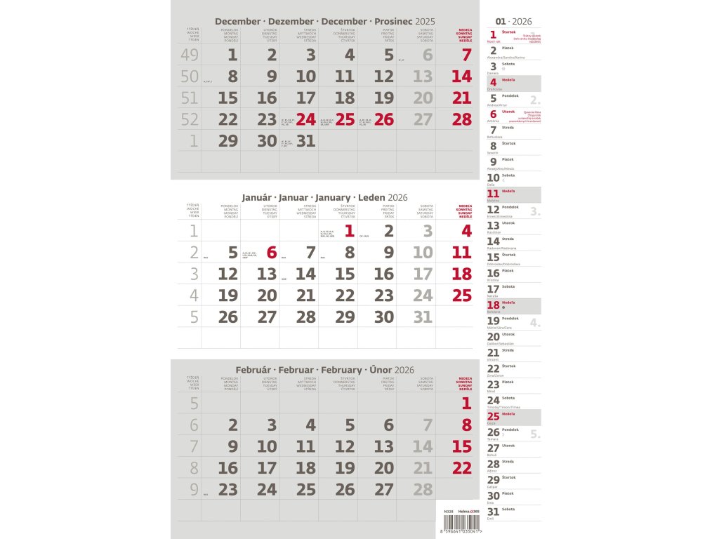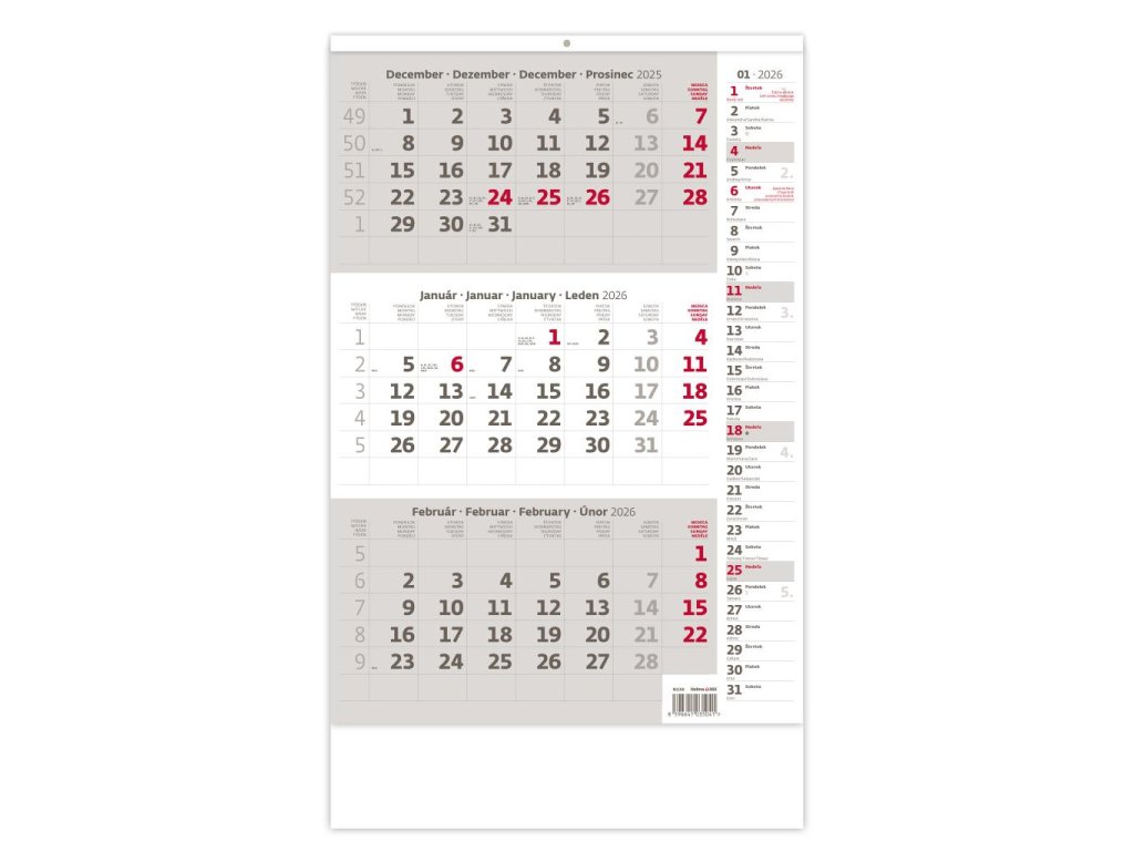 Nástenný kalendár 3-mesačný sivý s poznámkami 31,5 x 45 cm 2026