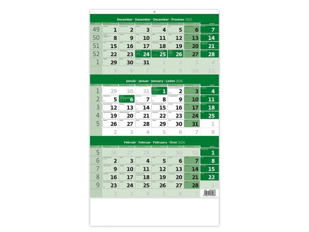 Nástenný kalendár 3-mesačný zelený 31,5 x 45 cm 2026