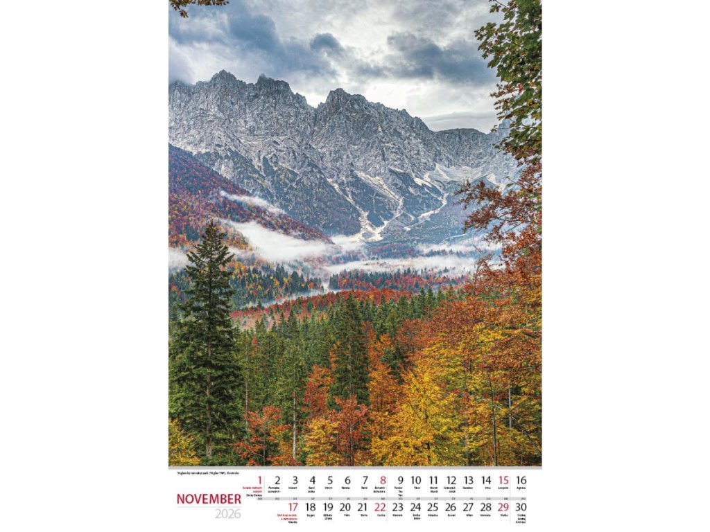 Kalendár Krásy hôr vás každý mesiac zavedie do dychberúcich scenérií horského sveta - od zasnežených štítov a zelených alpských lúk až po tajomné ranné hmly a zlaté západy slnka. Tieto pôsobivé fotografie zachytávajú majestátnosť prírody a prinášajú do vašich dní pokoj, inšpiráciu a úctu k divočine. Ideálny pre milovníkov turistiky, fotografie a ticha hôr.