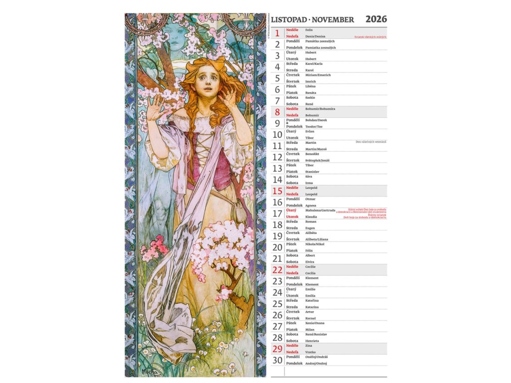 Nástenný kalendár Alfons Mucha 24 x 33 cm 2026