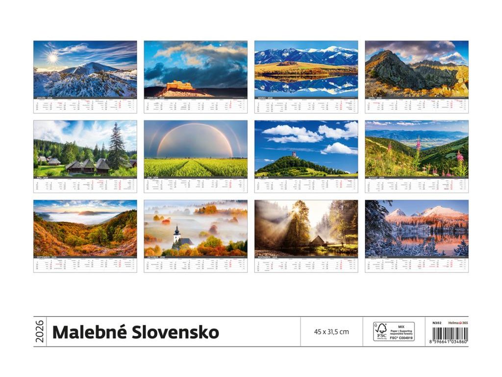 Nástenný kalendár Malebné Slovensko 45 x 31,5 cm 2026