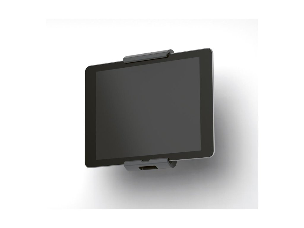 Rotačný stojan 360 ° na stenu na tablety od 7 do 13 ˝ na výšku alebo na šírku s jednoduchým vkladaním a vyberaním tabletu. Uchytávacie body po 90 °, ochrana pred bočným vybratím tabletu, nosné rameno s premenlivým uhlom sklonu od − 6 ° do + 46 °, dosah ramena 365 mm s rozsahom otáčania 180 °, symetrické otváranie držiaka od 160 do 275 mm. Otvor v stojane slúži ako výstup pre nabíjací kábel. Uzamknutie držiaka pomocou špeciálneho kľúča, silné a bezpečné upevnenie na stenu, jednoduchá montáž. Materiál hliník, ASB. Rozmery 85 × 50 × 180 mm.