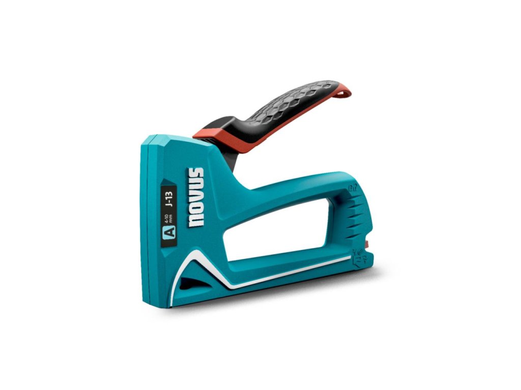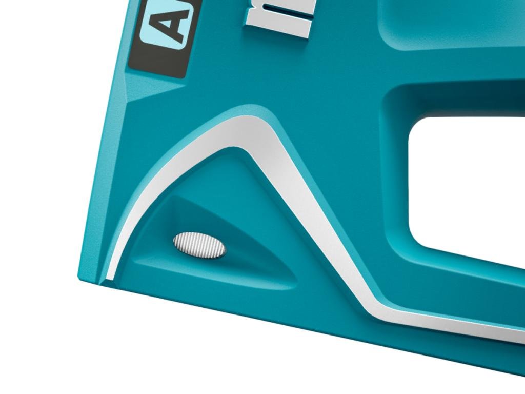 Malá ručná nastreľovačka s vysokokvalitným plastovým krytom na univerzálne použitie, napr. na rýchle napnutie tkaniny do rámu. Spodný plniaci zásobník s bezpečnostnou poistkou na ľahké plnenie spinkami, zámok rukoväte pre skladovanie, kontrolné okienko na sledovanie stavu naplnenia zásobníka. Kapacita: (A) spinky 140 ks.