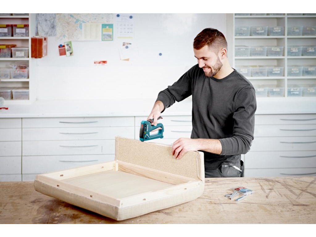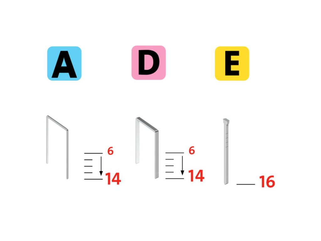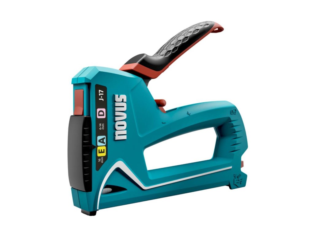 Veľká ručná nastreľovačka s vysokokvalitným plastovým krytom na univerzálne použitie, napr. na jednoduché upevnenie fólie, rýchle napnutie tkaniny do rámu a pod. Posuvný mechanizmus na ľahké prepínanie medzi tenkými spinkami a spinkami z plochého drôtu, ergonomická mäkká rukoväť, spodný plniaci zásobník s bezpečnostnou poistkou na ľahké plnenie spinkami, zámok rukoväte pre skladovanie, kontrolné okienko na sledovanie stavu naplnenia zásobníka. Kapacita: (A) spinky 150 ks, (D) spinky 85 ks.