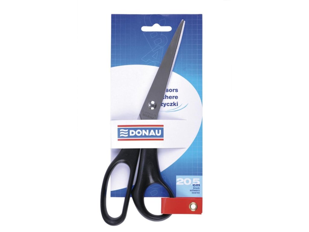 Kancelárske nožnice na strihanie papiera, kartónu, lepenky, samolepiacej pásky a pod. s pogumovaným úchytom a strihacou časťou z nehrdzavejúcej ocele. Farba čierna. Väčšie balenie 12 ks.