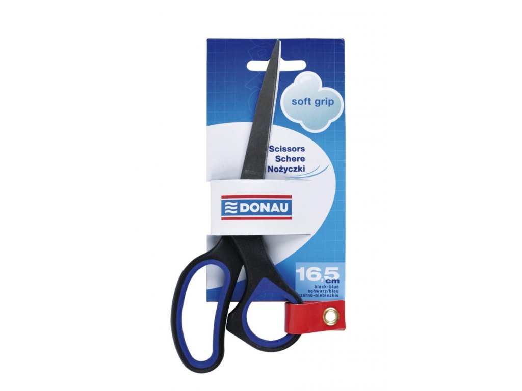 Kancelárske nožnice na strihanie papiera, kartónu, lepenky, samolepiacej pásky a pod. s pogumovaným úchytom a strihacou časťou z nehrdzavejúcej ocele. Farba čierna/-modrá.