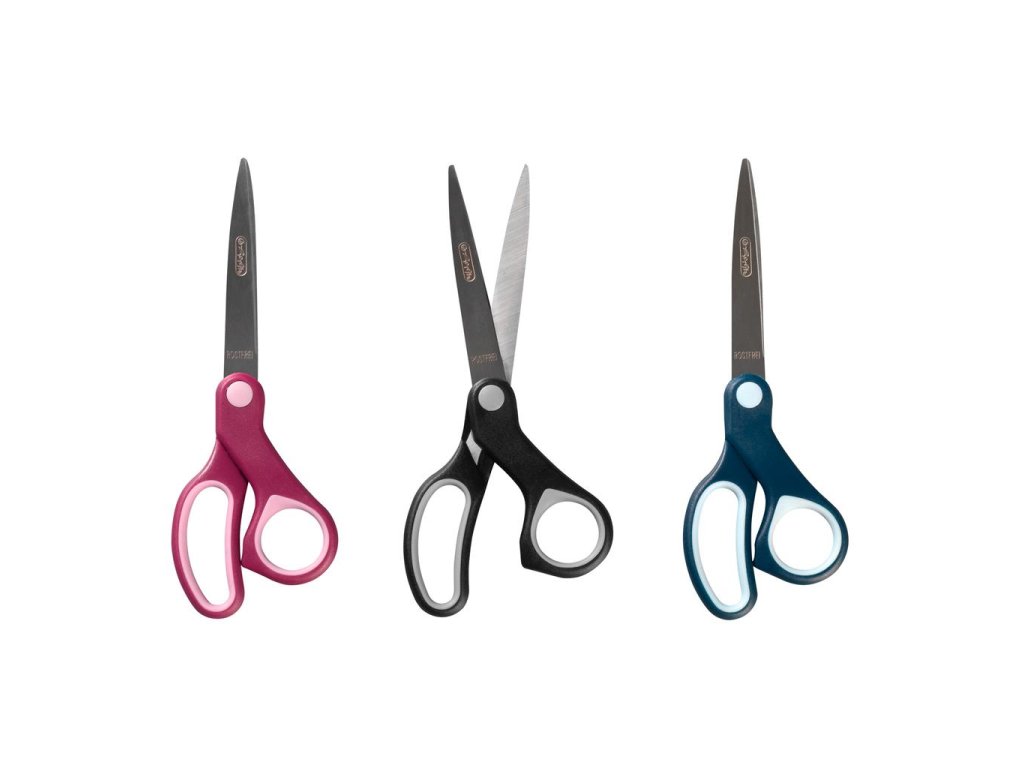 Veľké kovové kancelárske nožnice na strihanie papiera, kartónu a pod. v mixe farieb.