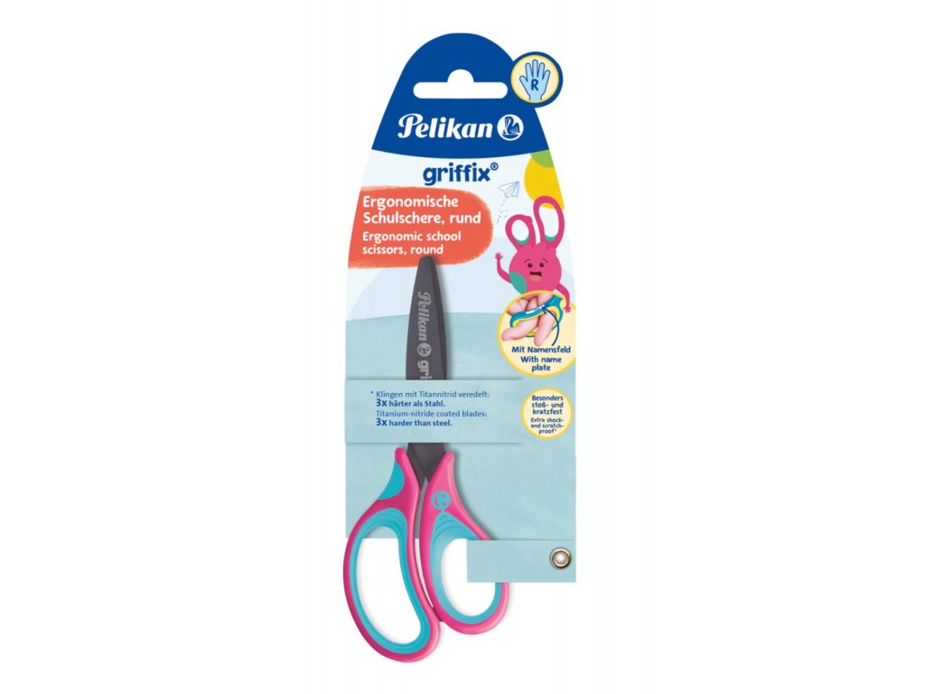 Nožnice Pelikan Griffix pre pravákov v blistri ružové