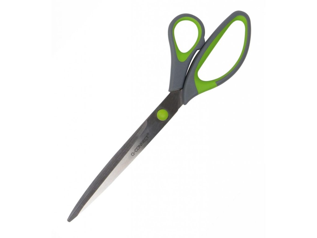 Ergonomické nožnice Q-CONNECT s vynikajúcou kvalitou rezu. Vďaka zahnutým mäkkým rukovätiam je práca s nimi pohodlná a ľahká. Dvojfarebná rukoväť (sivá / zelená). Dĺžka: 25,5 cm.