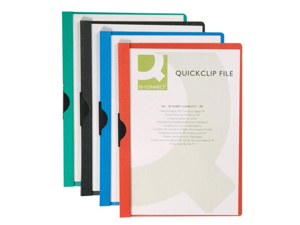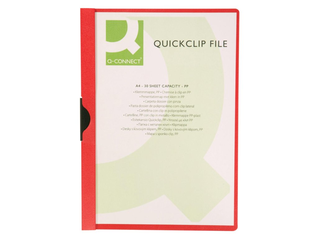 Obal z pevného polypropylénu s priehľadnou prednou stranou a kovovým vyklápacím klipom v čiernej farbe. Formát A4. Kapacita 1 - 30 listov. Väčšie balenie 25 ks. Farba červená.