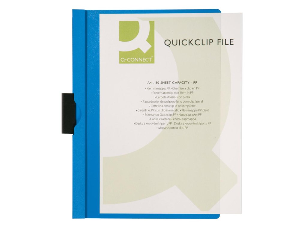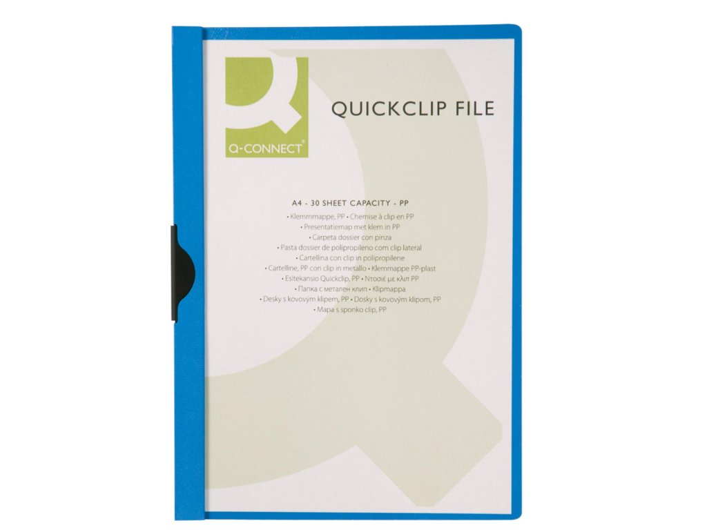 Obal z pevného polypropylénu s priehľadnou prednou stranou a kovovým vyklápacím klipom v čiernej farbe. Formát A4. Kapacita 1 - 30 listov. Väčšie balenie 25 ks. Farba modrá.