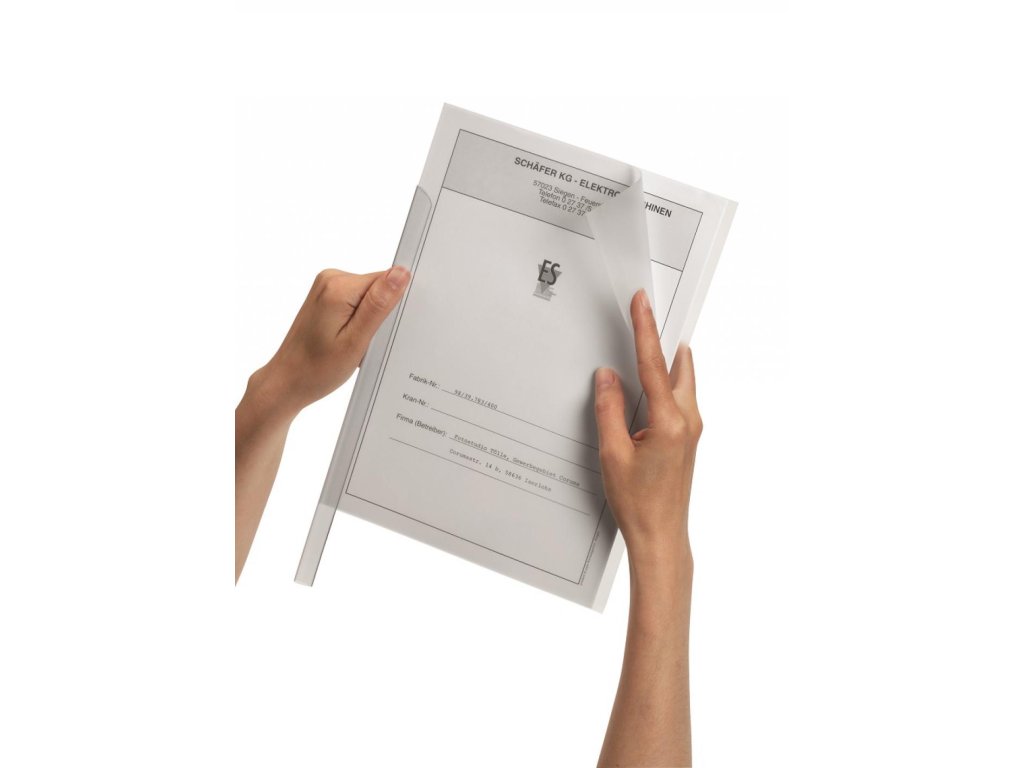Celopriehľadný obal na použitie s násuvnou lištou. Dodávaný samostatne bez lišty. Formát A4. Kapacita 1-100 listov A4. Materiál PVC. Balenie 50 ks. Farba: priehľadná číra