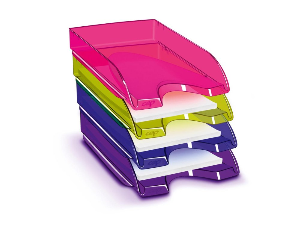 Vďaka štíhlym a elegantným líniám si tento odkladač nájde miesto nielen na stole, ale aj na bočnom stole alebo v skrini. Je vhodný na dokumenty do veľkosti 24 × 32 cm. Široký čelný výrez umožňuje ľahké vyberanie obsahu. Odkladač je stohovateľný vertikálne, aj stupňovito dozadu. Kapacita 450 listov (80 g / m²). Celkové rozmery 257 × 348 × 66 mm. Materiál 100% odolný vysokokvalitný plast. Jednotlivé kusy sa môžu navzájom jemne farebne líšiť. Väčšie balenie 10 ks. Farba transparentná ružová.