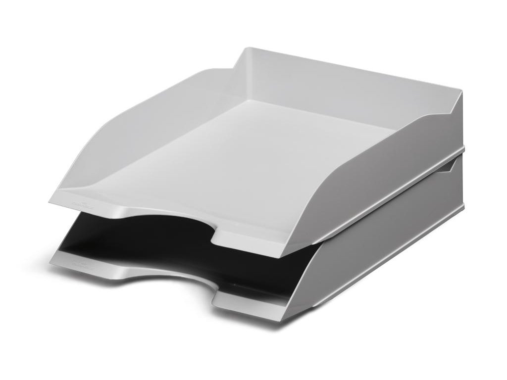 Stohovateľný buď zvisle alebo odsadene. Predná strana zabraňuje vykĺznutiu dokumentov. Pre formáty A4 až C4.