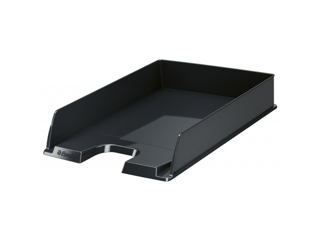 Moderný odkladač na uloženie dokumentov formátu A4 s unikátnym embosovaným povrchom po boku odkladača a v sviežich farbách radu Esselte VIVIDA. Možnosť kolmého alebo predsadeného stohovania, zaoblený výrez pre jednoduchší prístup k dokumentom. Materiál polystyrén. Rozmery 254 × 350 × 61 mm. Farba čierna.