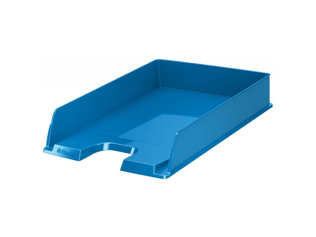 Moderný odkladač na uloženie dokumentov formátu A4 s unikátnym embosovaným povrchom po boku odkladača a v sviežich farbách radu Esselte VIVIDA. Možnosť kolmého alebo predsadeného stohovania, zaoblený výrez pre jednoduchší prístup k dokumentom. Materiál polystyrén. Rozmery 254 × 350 × 61 mm. Farba modrá.