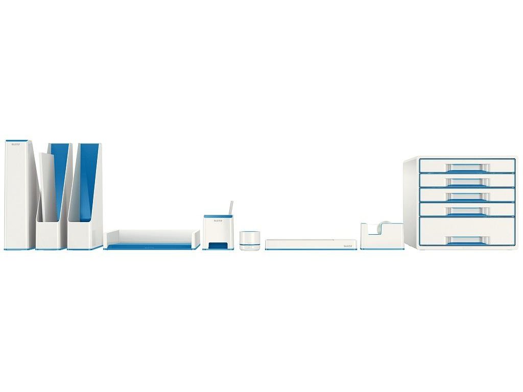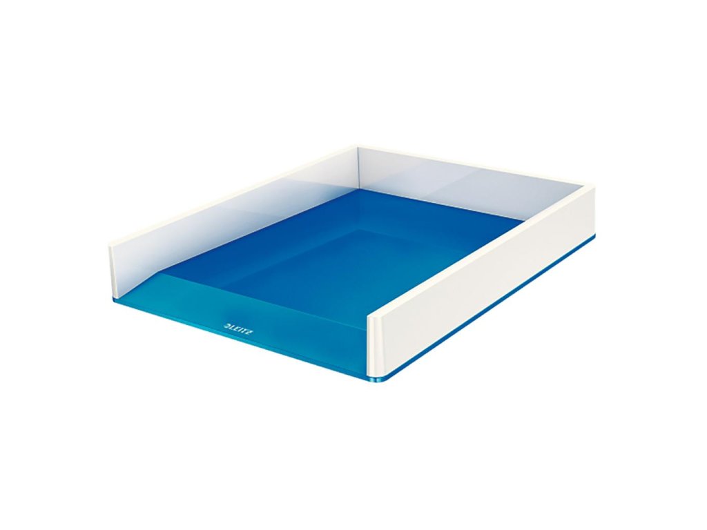 Stohovateľný kancelársky odkladač na dokumenty, časopisy a zložky v dvojfarebnom prevedení v metalických farbách WOW s lesklým povrchom. Farba modrá.