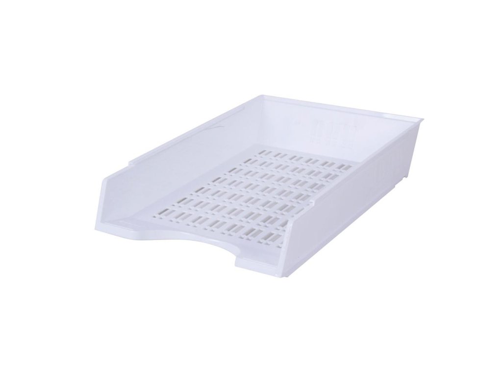 Plastový odkladač na papiere formátu A4 s možnosťou stohovania dozadu. Úprava priehľadná. Väčšie balenie 10 ks.