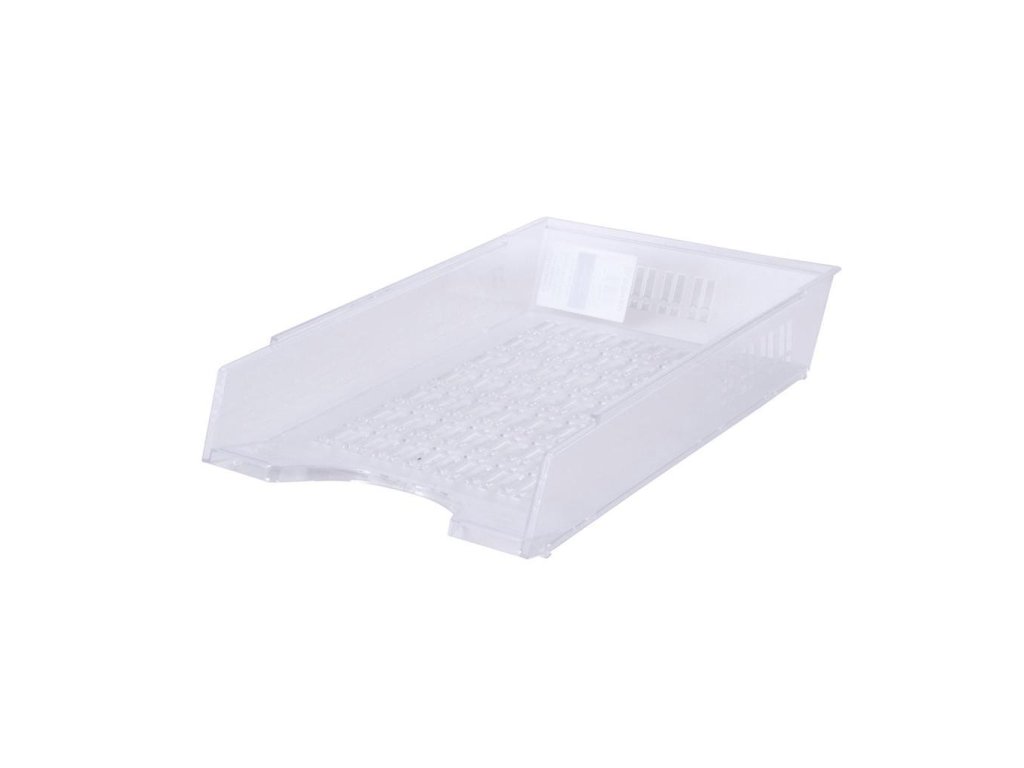 Plastový odkladač na papiere formátu A4 s možnosťou stohovania dozadu. Úprava priehľadná. Väčšie balenie 10 ks.