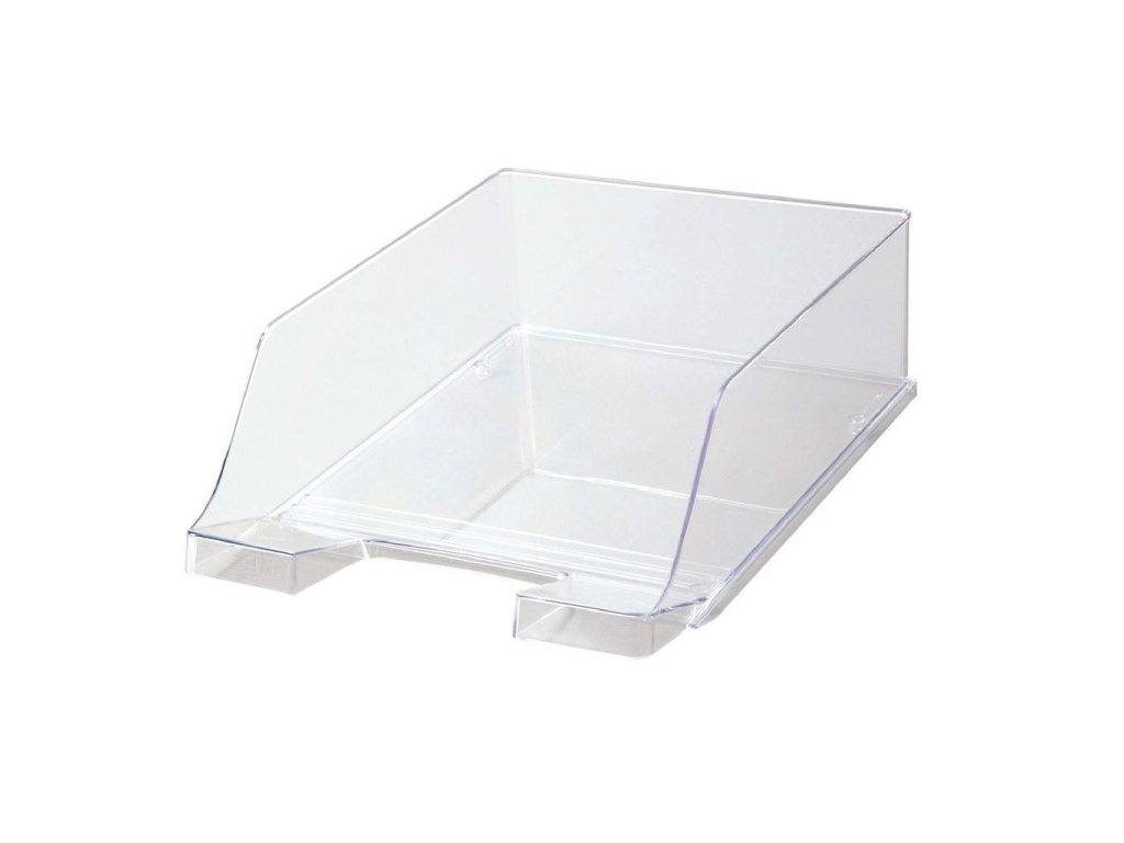 Stohovateľný plastový odkladač vo vysoko lesklom prevedení formátu C4. Úprava antistatická priehľadná. Výška odkladača 100 mm. Väčšie balenie 2 ks. Farba: priehľadná číra