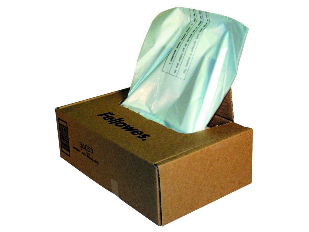 Odpadové vrecia pre skartovačky Fellowes. Objem 34 l, v balení 100 ks.