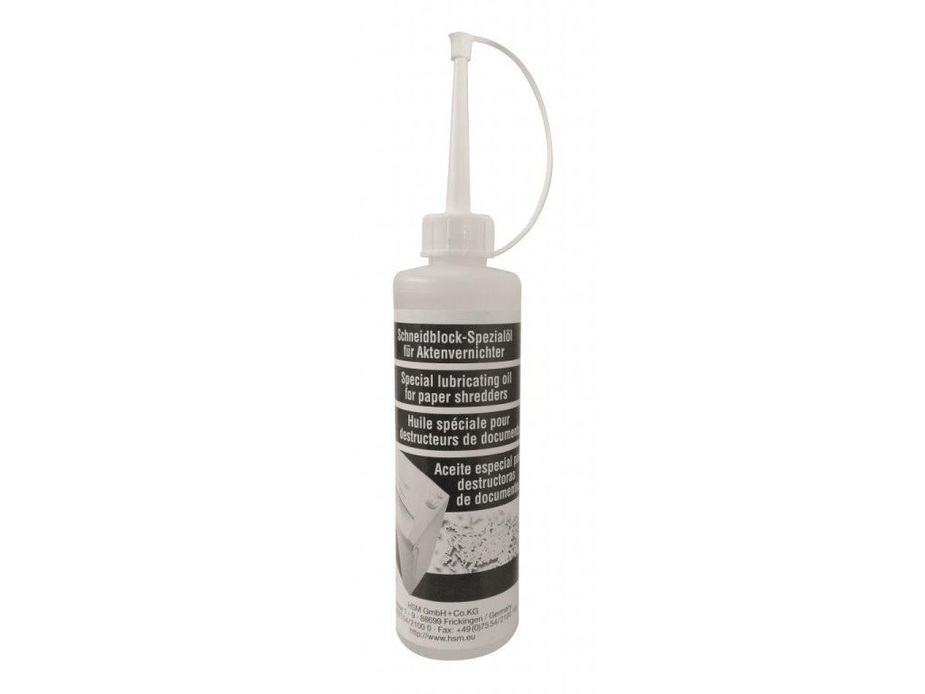 Údržba skartovacích zariadení najmä s priečnym rezom spočíva v pravidelnom olejovaní rezacej jednotky špeciálnym olejom.Objem: 250 ml