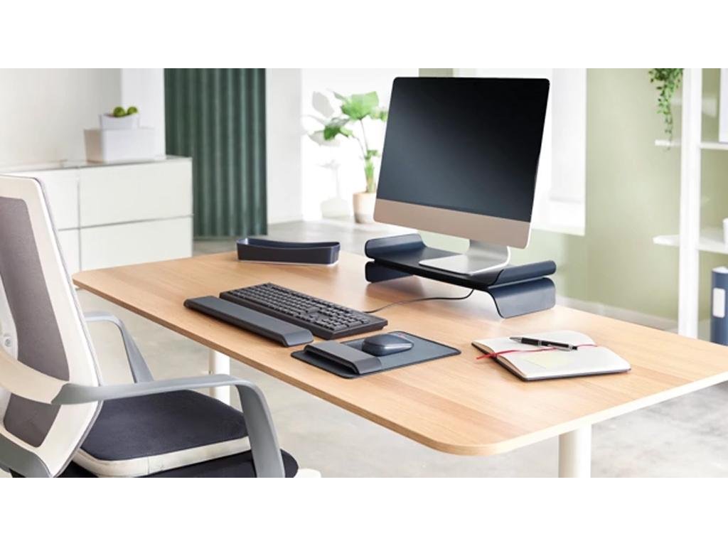 Podnožka pod stôl Leitz Ergo je dokonalá opierka na nohy, ktorá pomáha vytvoriť pohodlné a aktívne pracovné miesto. Nastaviteľná počítačová opierka nôh má 2 výškové nastavenia s plochou aj zakrivenou platformou, ktorá zaisťuje správne ergonomické držanie tela a polohu pri písaní. Zostaňte pri práci aktívni vďaka hojdavému pohybu, ktorý podporuje zdravý krvný obeh a zvyšuje produktivitu. Pomáha znižovať nepohodlie a stuhnutosť, ktoré môžu byť dôsledkom dlhodobého sedenia. Nastaviteľná výška pre maximálne pohodlie a zaistenie správnej polohy sedenia. Jednoduchým otočením opierky nôh si môžete vybrať z dvoch výškových nastavení (78 mm/128 mm). Jedna plochá a jedna zakrivená protišmyková platforma pre podporu akejkoľvek veľkosti nôh. Hmotnosť 2,62 kg.
