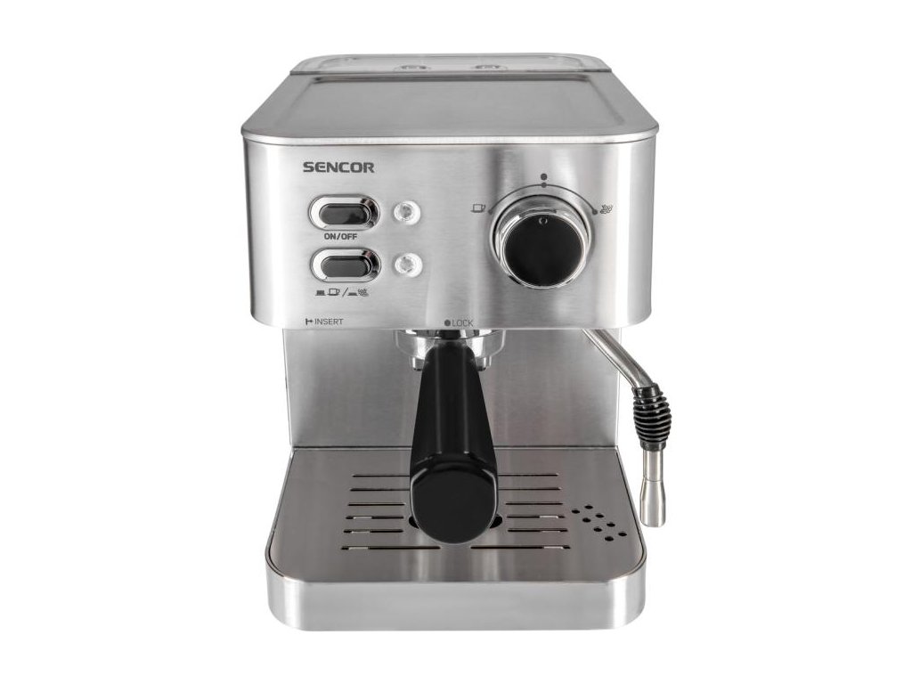 Kávovar na Espresso a Cappuccino. Tlakové čerpadlo 15 barov. Telo z nerezovej ocele. Nerezový filter pre 1 alebo 2 šálky kávy. Voľba funkcie pary/horúcej vody. Vyhrievaná kovová doska na predhriatie šálok. Odnímateľná nádržka na vodu s objemom 1,5 l. Indikátor hladiny vody. Protišmykové nožičky. Príslušenstvo: Držiak filtra, odmerka na kávu, 2 filtre (na 1 a na 2 šálky)..