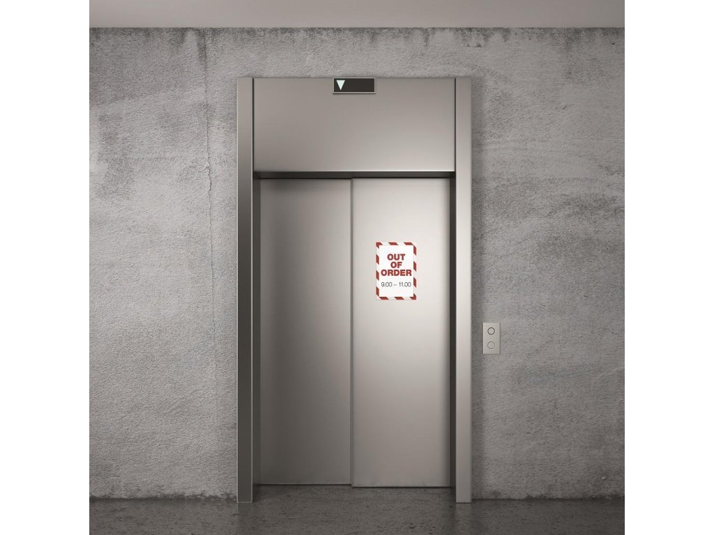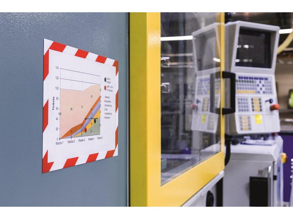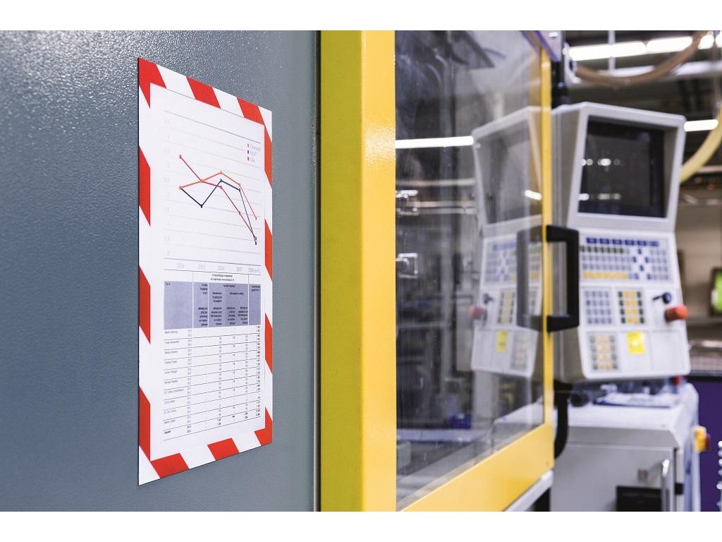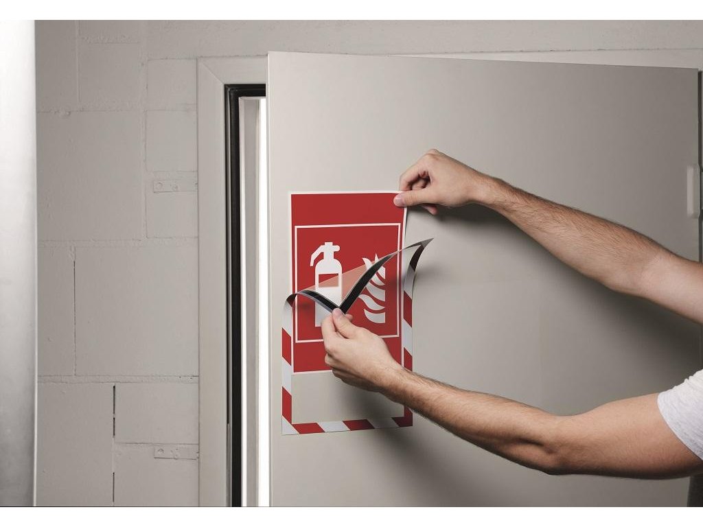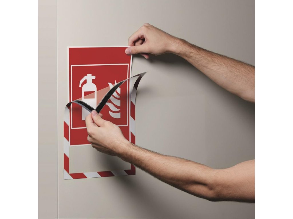 Bezpečnostný panel s magnetickou časťou na zadnej strane rámika na jednoduché a rýchle vkladanie informácie formátu A4. Vhodný na hladké magnetické povrchy, napr. magnetickú tabuľu. Farba červeno-biela. Balenie 5 kusov.