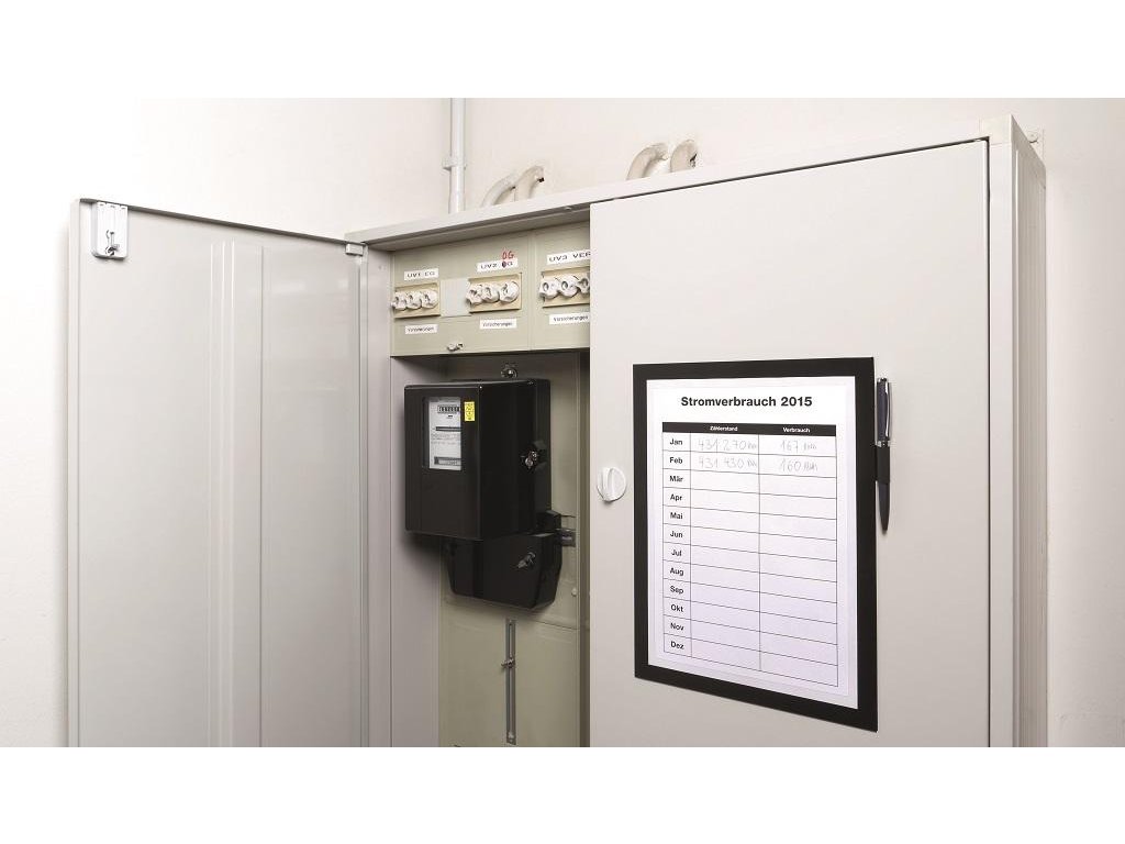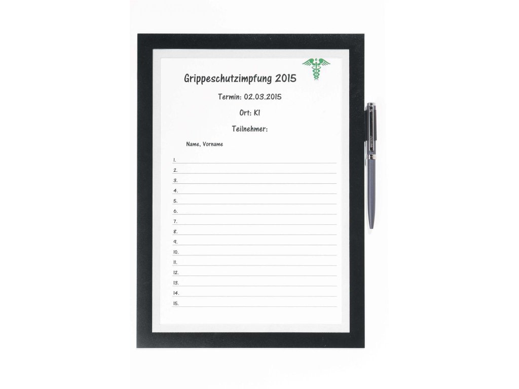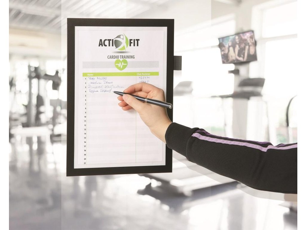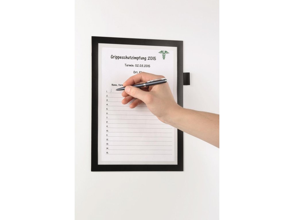 Samolepiaci panel s držiakom na pero slúži na písanie poznámok. Dodávaný s 5 listami na písanie. Formát A4. Farba čierna.
