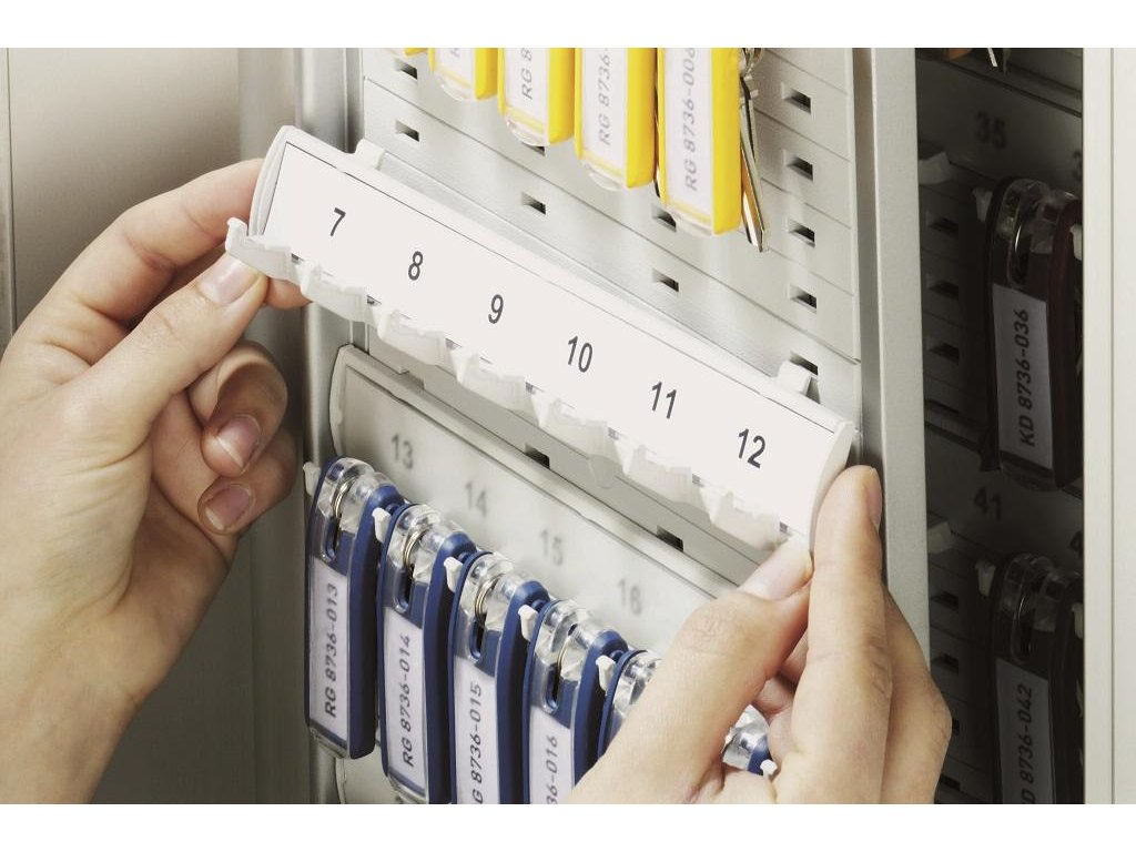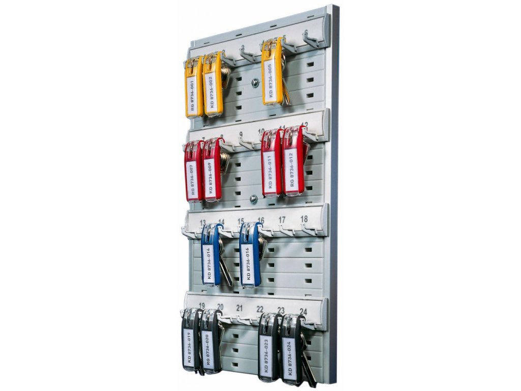 Dokonalý organizačný systém na kľúče bez dokupovania ďalších doplnkov s jednoduchou montážou na stenu. Panel umožňuje pohodlný a priamy prístup až k 24 menovkám s kľúčami. Na výšku zaberie iba 40 cm, čím ušetrí miesto. Súčasťou balenia je 6 menoviek na kľúče v rôznych farbách. Farba panelu sivá.