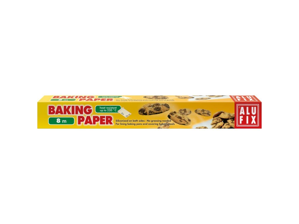 Papier na pečenie 8m je biely, obojstranne silikonovaný, balený v krabičke, pečivo sa nelepí a neprihára. Chráni potraviny aj kuchynský riad. Jednoduchá manipulácia.